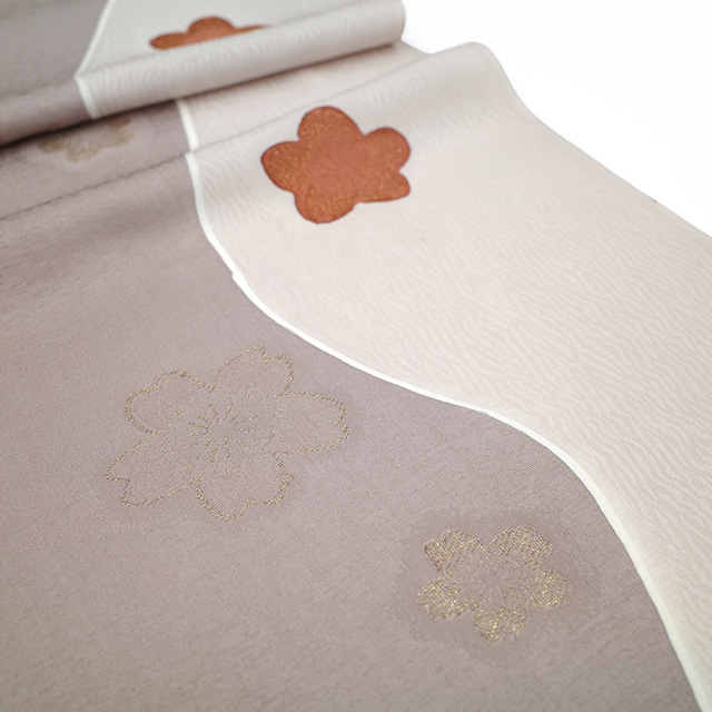 ・ローズグレイを基調として 金糸で桜の花が表現されたもの