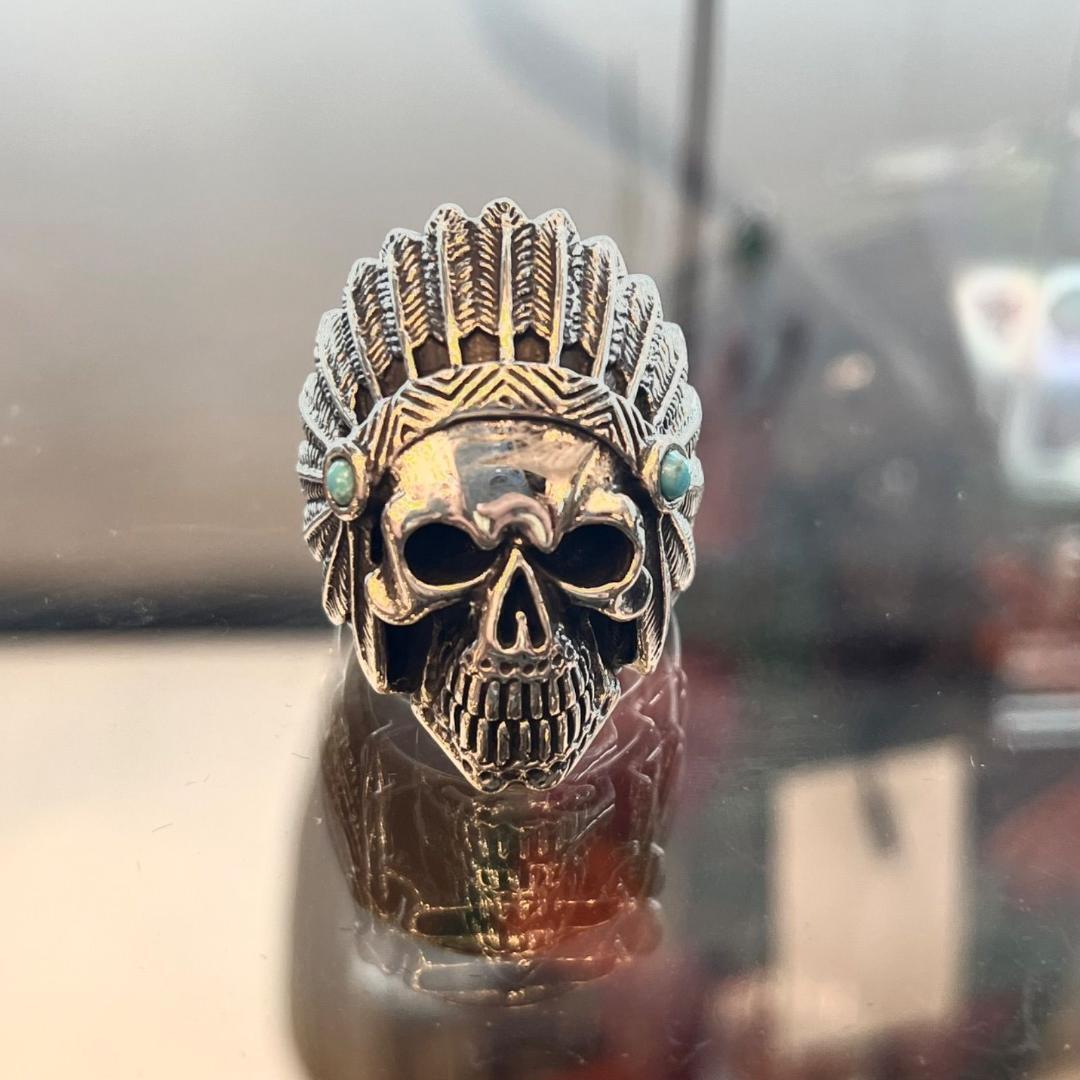 シルバー925とターコイズの絶妙な組み合わせが生み出す、唯一無二のスカルリング。