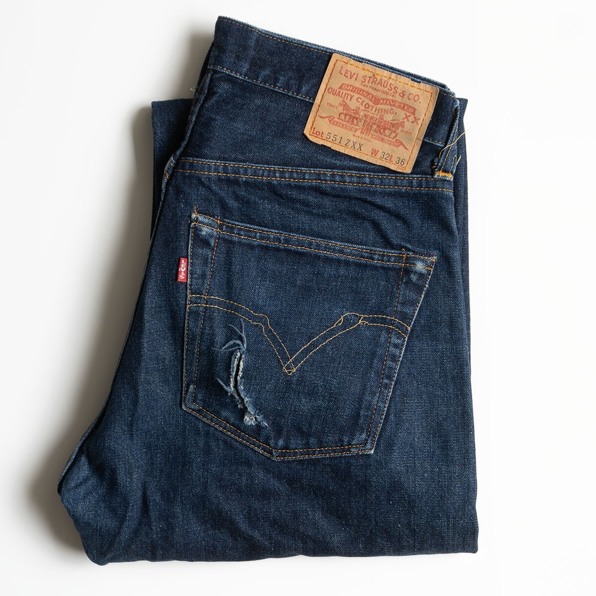 中古品でございます。バックポケットに破れがございます。その他着用感や色落ちがございます。神経質な方はお控え下さい。