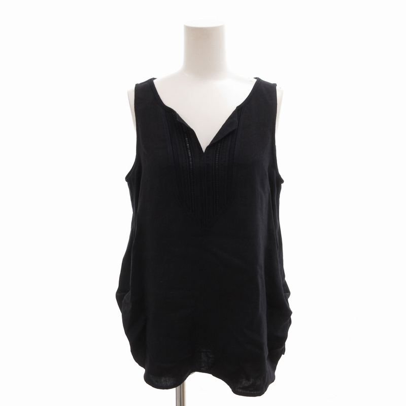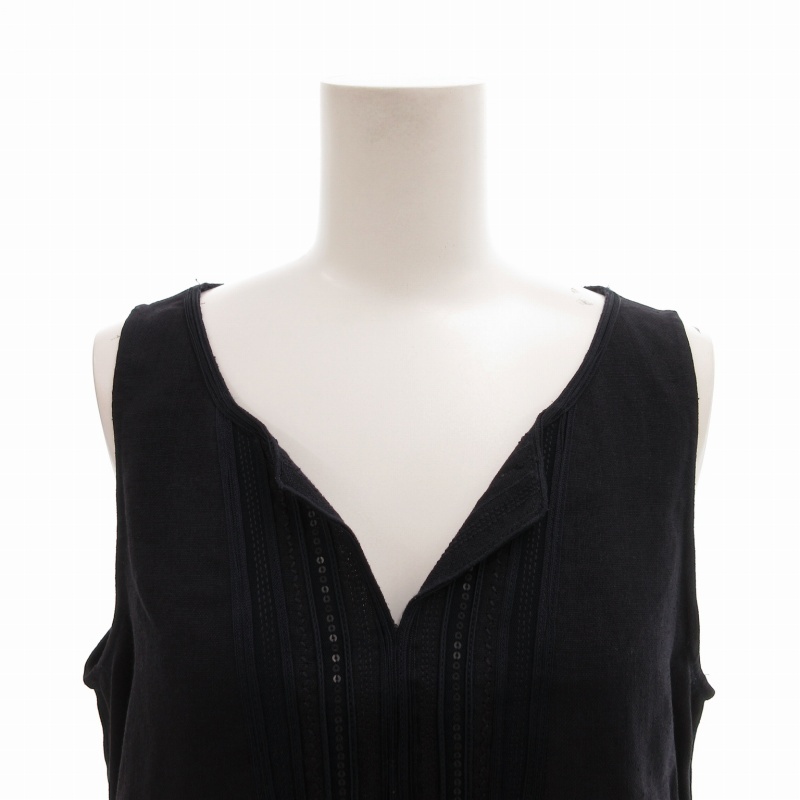 ソブ sov. ダブスタ ノースリーブシャツ ブラウス キーネック ビジュー 刺繍 紺 ネイビー /FT レディース