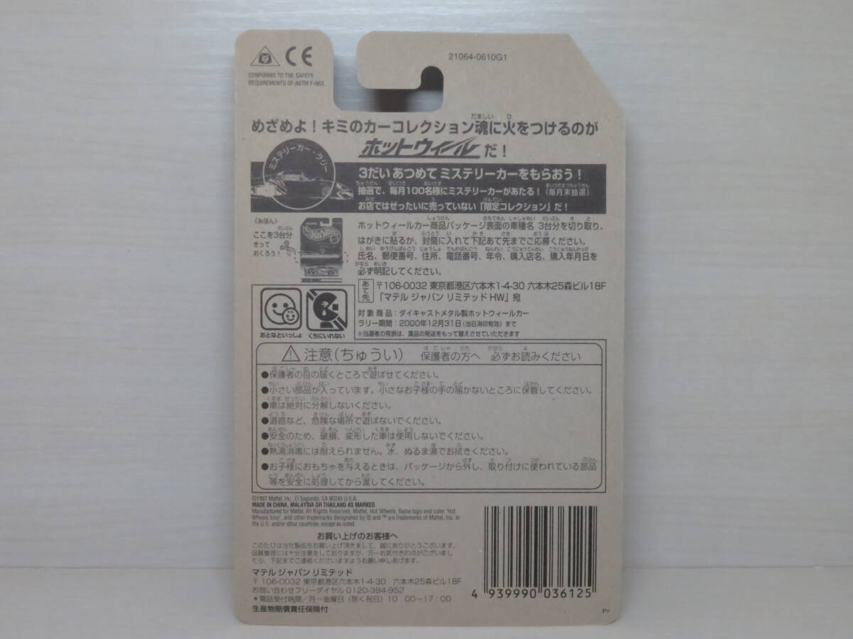 ホットウィールの小スケール(トミカサイズ)のミニカーです。新品で購入以来、ブリスター未開封で暗所保管しておりましたので、ミニカー自体は基本的に美品ですが、個体差、塗装ムラなど量産品レベルをご理解いただける方のみ入札してください。また、ミニカー特有の経年劣化(塗装の浮き、荒れ等)がある場合もありますので、状態に不安を抱く方は入札されない方が無難です。状態は目視でチェックしていますが、万一、不良、欠品があっても返品、アフターフォローは一切お受けしませんので、そういうリスクを承知いただける方のみ入札してください。ブリスター、台紙は経年で変色、スレ、折れ、ヘコミなどがありますので、状態を気にする方は入札をご遠慮ください。