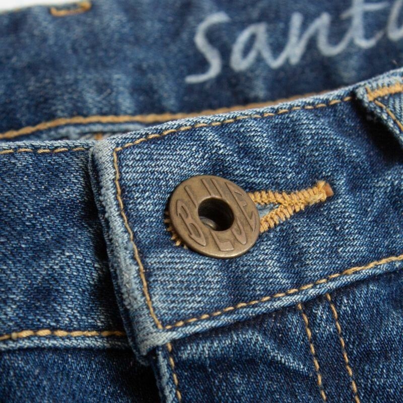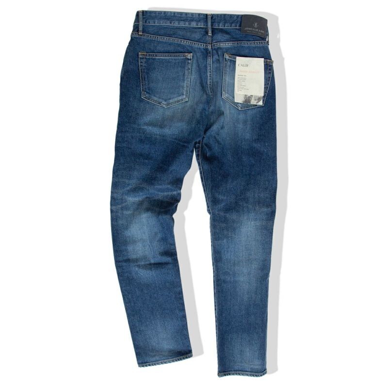フロントは、着脱のしやすいファスナー仕様で、JAPAN BLUEオリジナルの「ジッパー」と「ドーナツボタン」を使用した、クラシカルな5ポケットタイプ。さらに、CALIFシリーズのオリジナルのパッチが良い雰囲気を醸し出しています。股上はやや深めで裾に向かってしっかりテーパードをかけたキレイなシルエット。 ベーシックなシルエットで、長く愛用できるアイテムです。