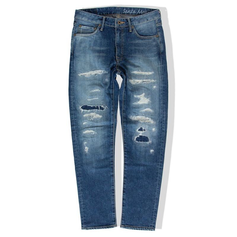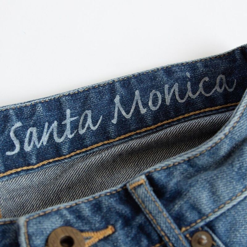 1本1本職人の手で丁寧にダメージやリメイク加工を施したデザインは他にはない本格的な仕上がり。ロサンゼルスの観光・ビジネスの中心街「サンタモニカ」をイメージし、様々な人種が集う様子を濃淡のコントラストで表現した仕上がりです。