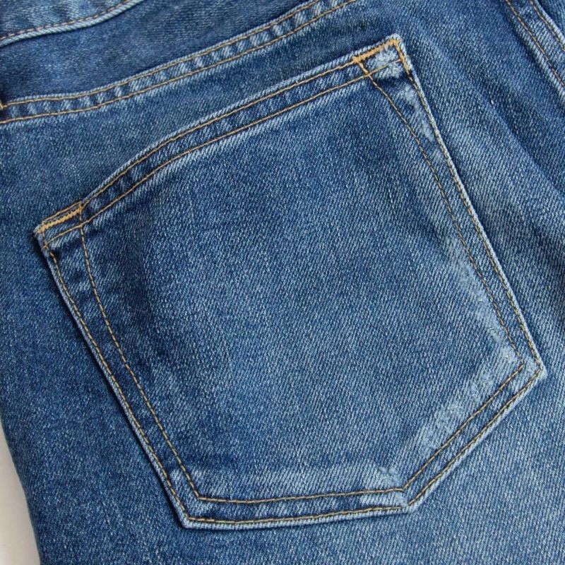 生地は12ozの程よい厚み。伸縮性もあるので穿き心地は抜群です。ストレッチデニムながらも、大量生産にはない絶妙なハリ感を残しているので、デニム本来の程よい素材感と立体感を長く楽しむことができます。