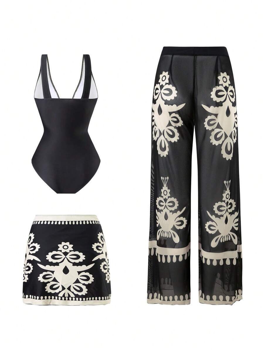 レディース 水着 ワンピース 2025年新作 レディース ワンピース水着セット 2枚入り、ディープネック ノースリーブ、メッシュロ