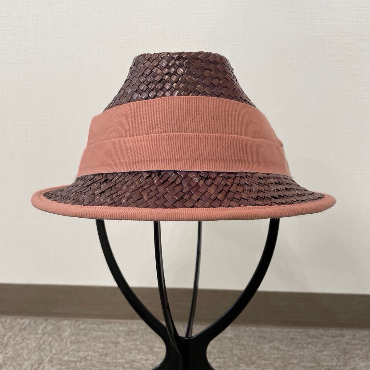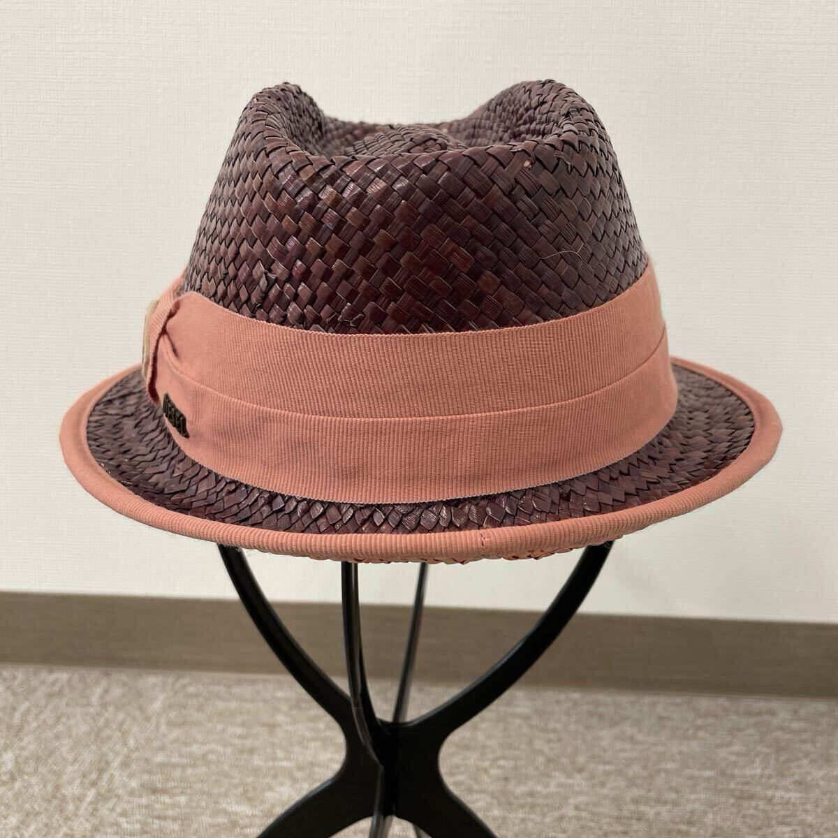 ブラウンとピンクのカラーが可愛い可愛らしい中折れ帽子です
