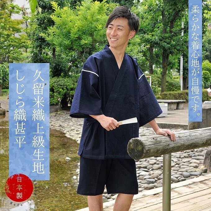 久留米で生地を織り日本で縫製を行った日本製綿100%のしじら織甚平です。