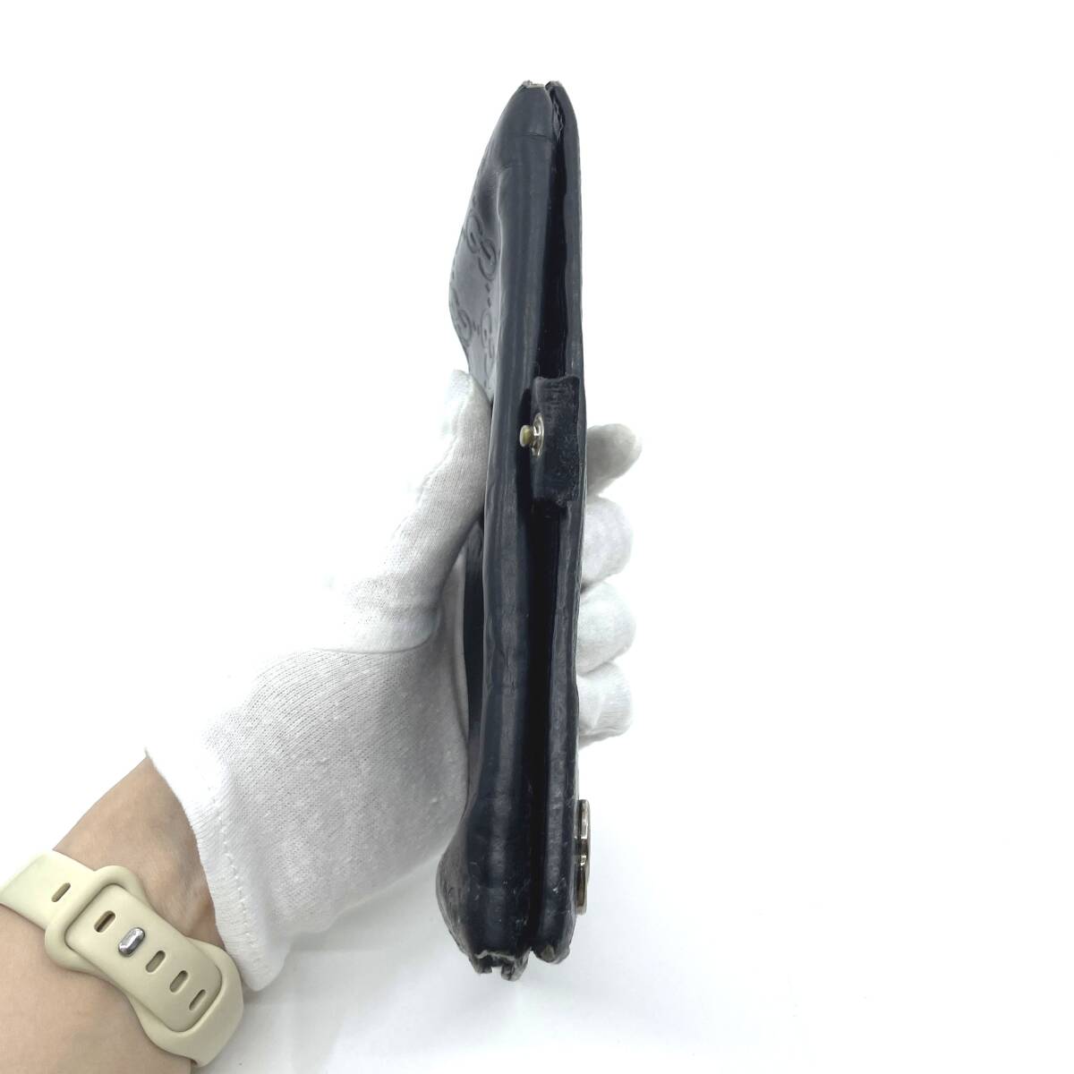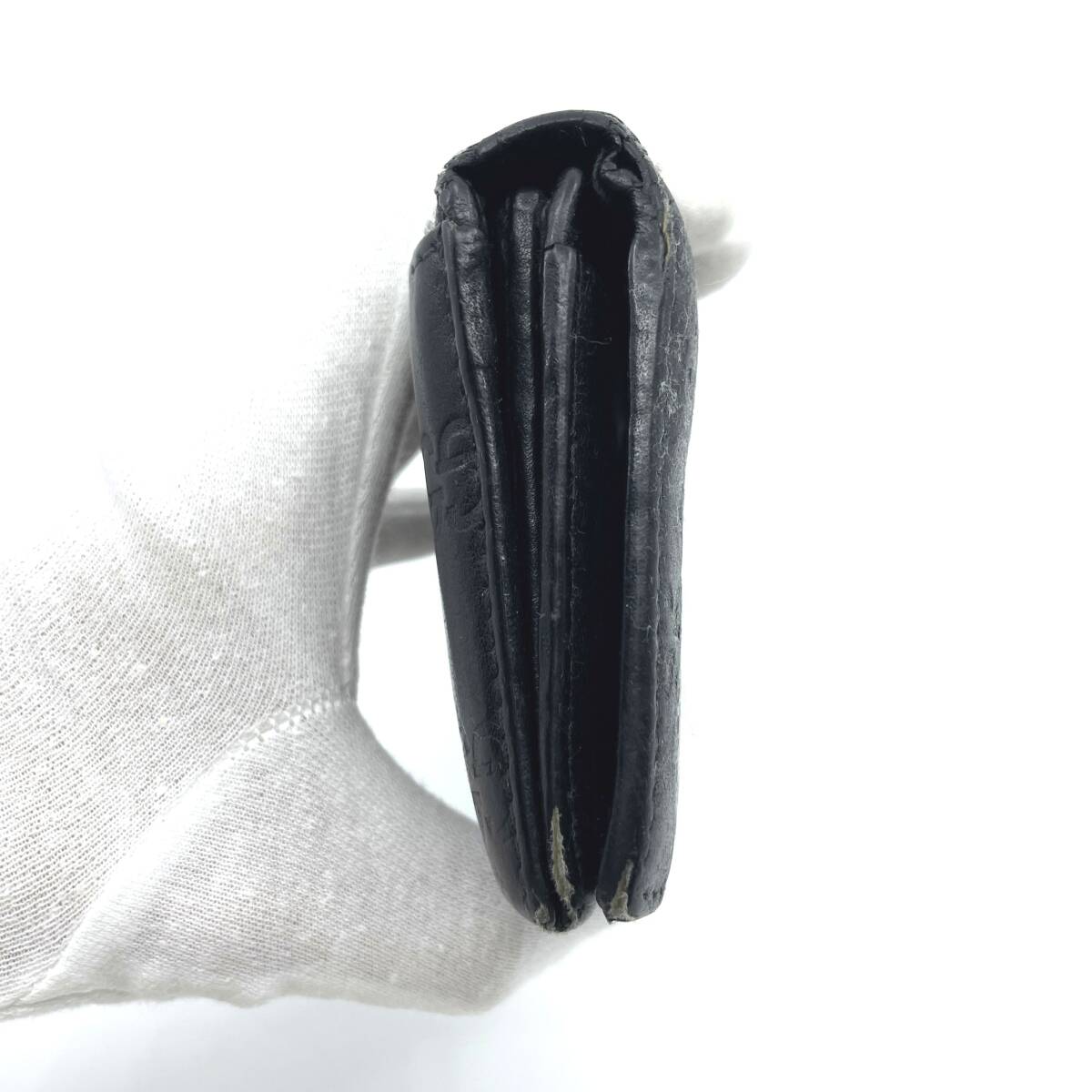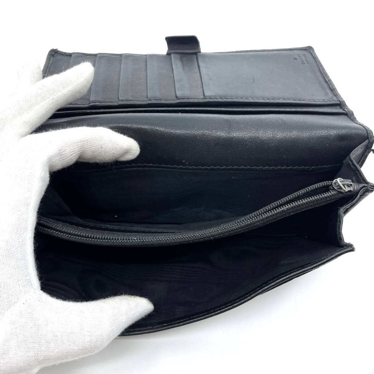 【難有り】GUCCI グッチ グッチ シマ 二つ折り 長財布 GGシルバー金具 レザー 型押し ブラック系 216589 1147