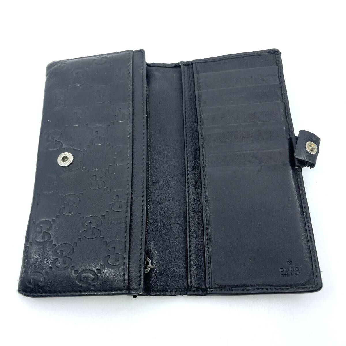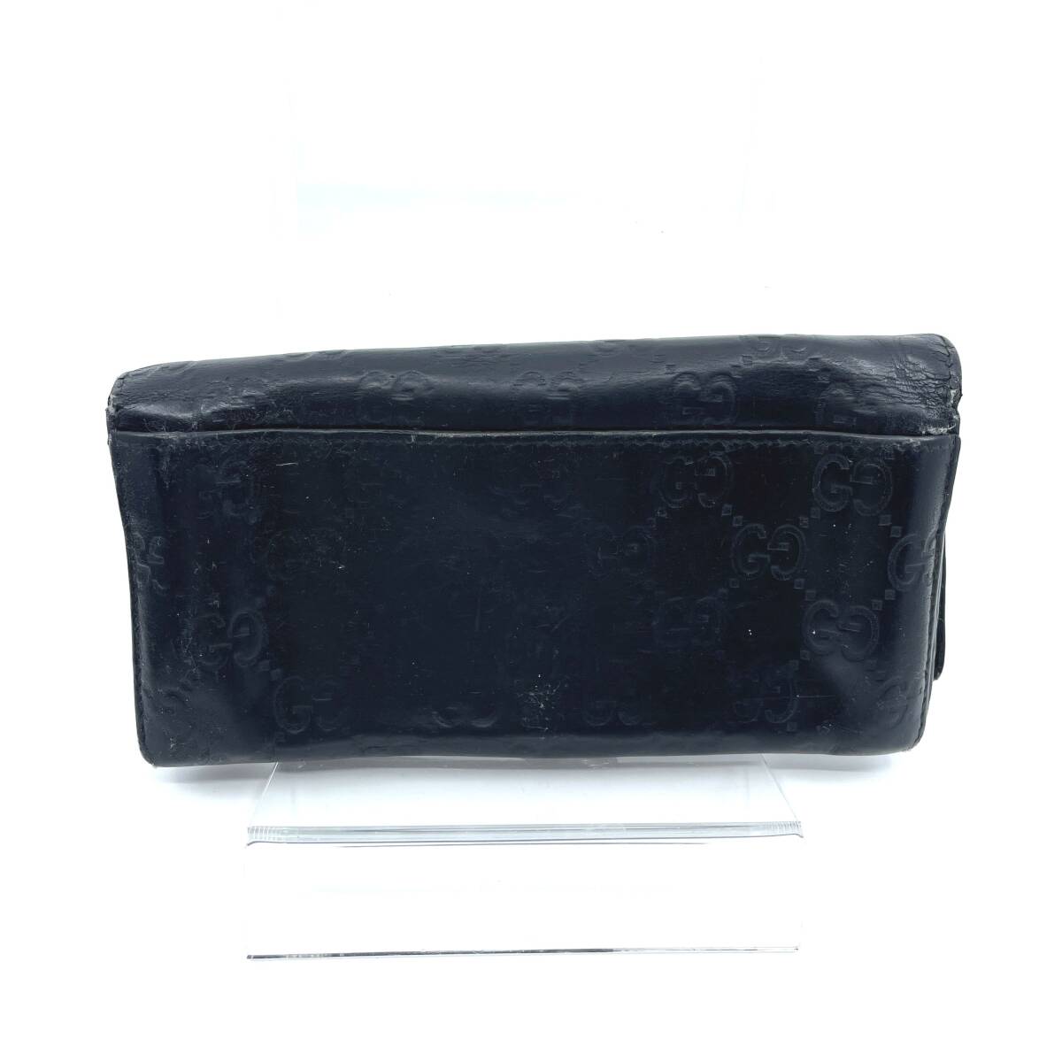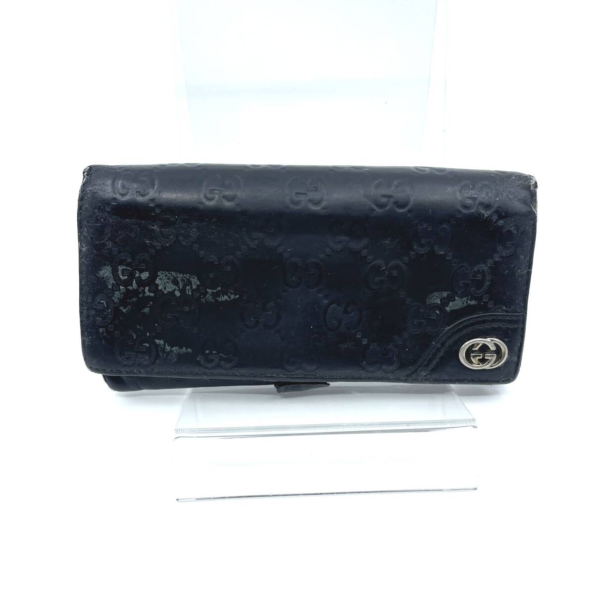 グッチ シマ 二つ折り 長財布 GGシルバー金具 レザー 型押し ブラック系