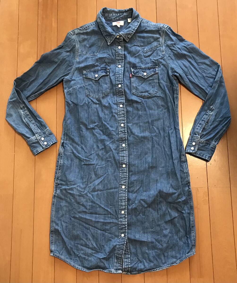 USEDのリーバイスのデニムシャツワンピースです。 丸いボタンはツヤツヤしていて可愛いです。 サイズはSで、素材は綿100%です。 平置き採寸(cm)で、着丈:約92 身幅:約45 肩幅:約37.5 袖丈:約59です。多少の誤差はご了承ください。 1度のみの着用のため、特に目立つダメージもなく美品かと思います。 USEDにご理解いただける方の入札をお待ちしております。 ノークレーム・ノーリターンで、お願いいたします。 | |||