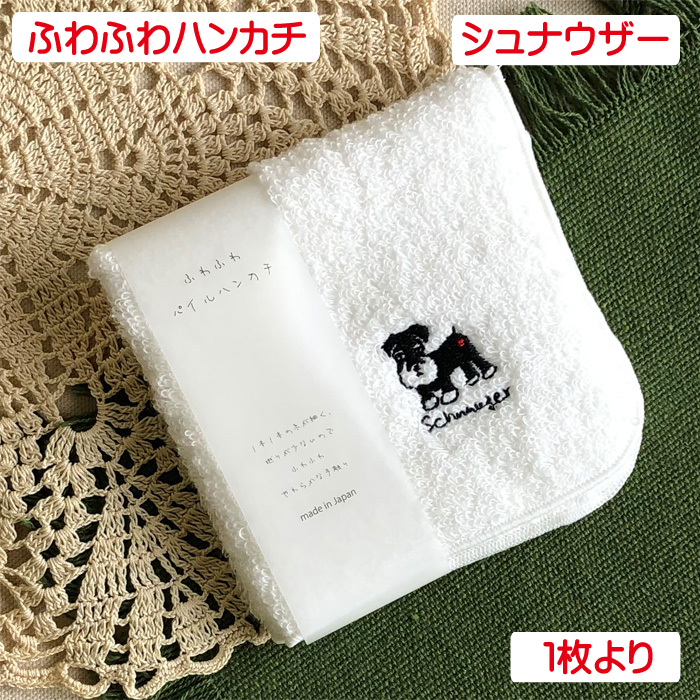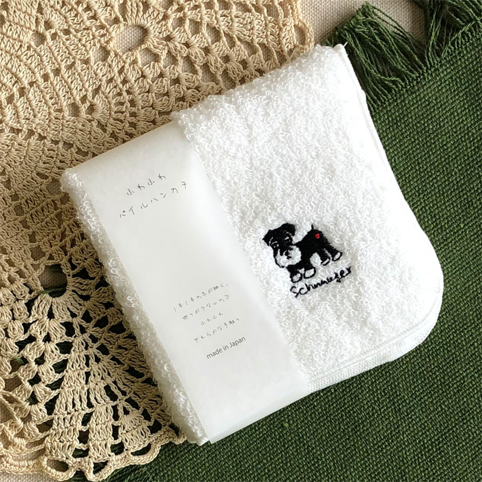 | シュナウザー柄 両面ふわふわパイルハンカチ | |||