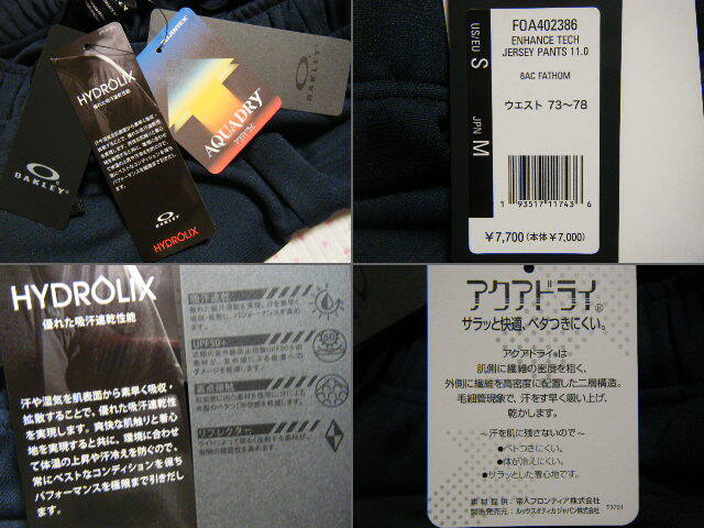 オークリー OAKLEY ENHANCE TECH JERSEY PANTS トレーニング用高機能ロングパンツ・ジャージ 紺系 W 73~78㌢ 吸水速乾/ストレッチ機能