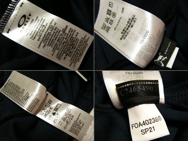 本体は軽量ポリエステル素材。    吸汗速乾機能があり、二層構造でサラッとした少し厚みのあるストレッチ生地を使用し、肌面は凹凸加工を施し、よりベタつきを抑制させたトレーニング&ランニング用高機能ロングパンツ・ジャージ。     トレートフィットモデル。     UVカット機能あり。    右膝裏にリフレクターテープ装備。      ロゴマーク及び、デカロゴ文字はプリント。     両サイドにフラップポケットあり。    ウエスト部にドローコード装備。     モデル名   OAKLEY ENHANCE TECH JERSEY PANTS     表記カラー  6AC FATHOM   ネイビー系
