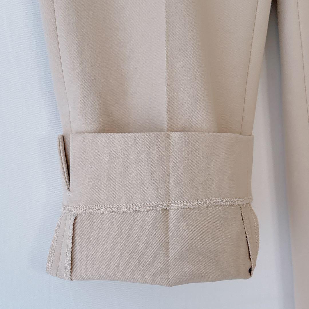 適度なストレッチ性があり、インナーの線をひろわない厚さと、しっかりしたハリ感があり、型くづれしづらい素材です。