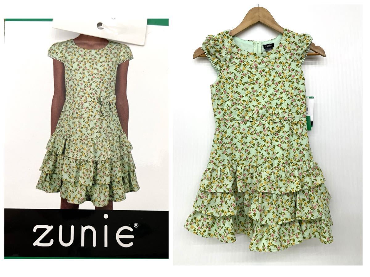 新品■Zunie 女の子 花柄ワンピース 10 / 10歳 150cm 花柄 グリーン