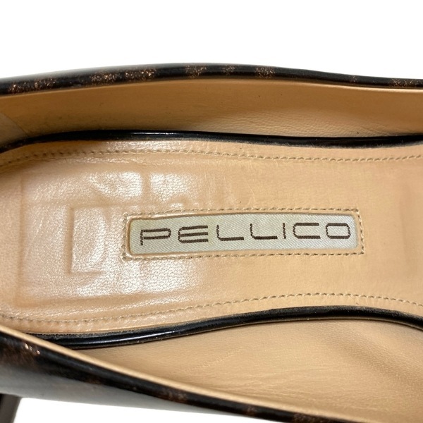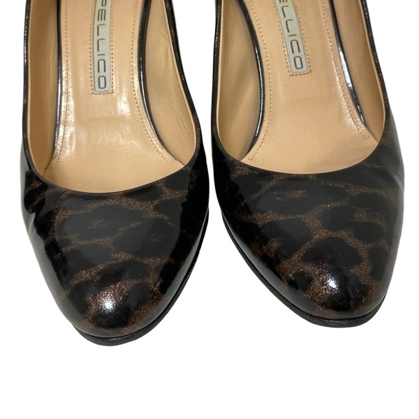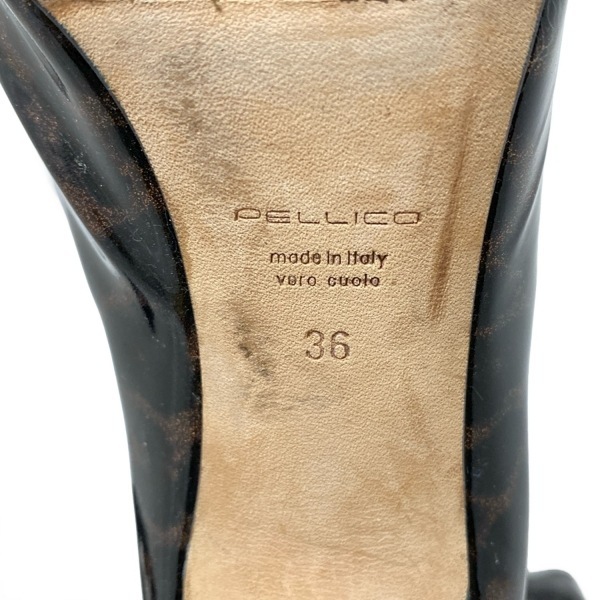 ペリーコ PELLICO パンプス 36 - レザー 黒×ブロンズ レディース ラメ/豹柄/アウトソール張替済 靴