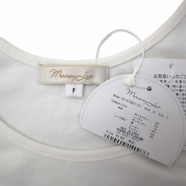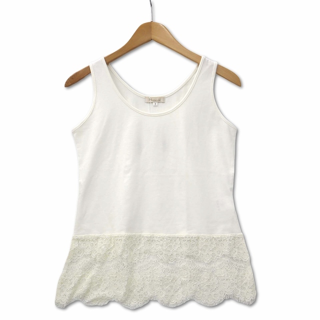 未使用品 マーキュリーリュクス MercuryLUX 裾レース ノースリーブカットソー タンクトップ アイボリー F レディース