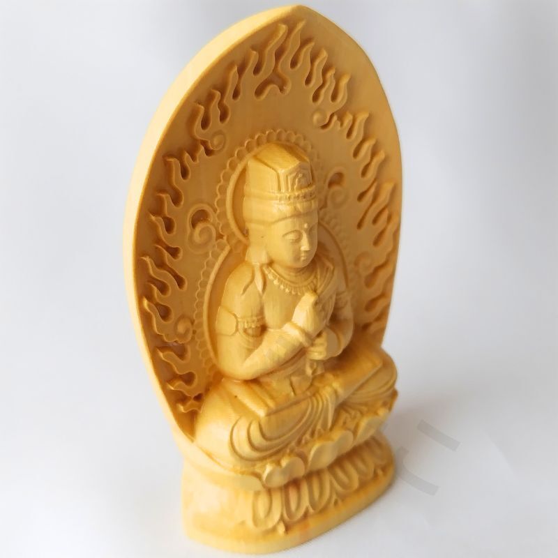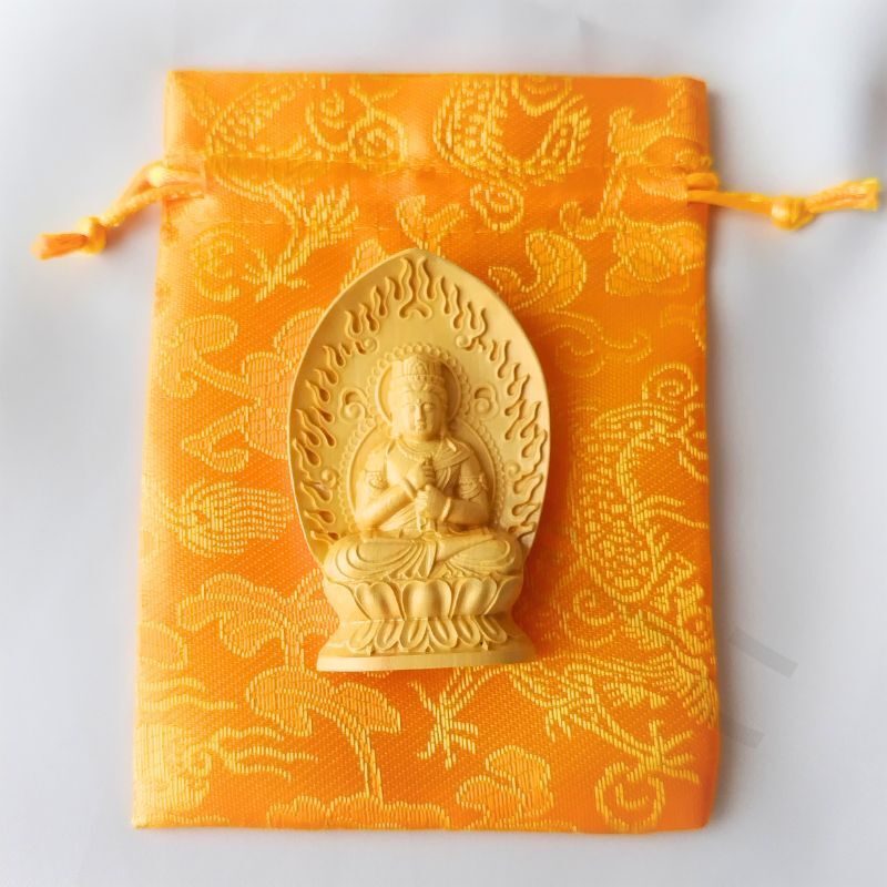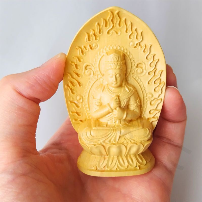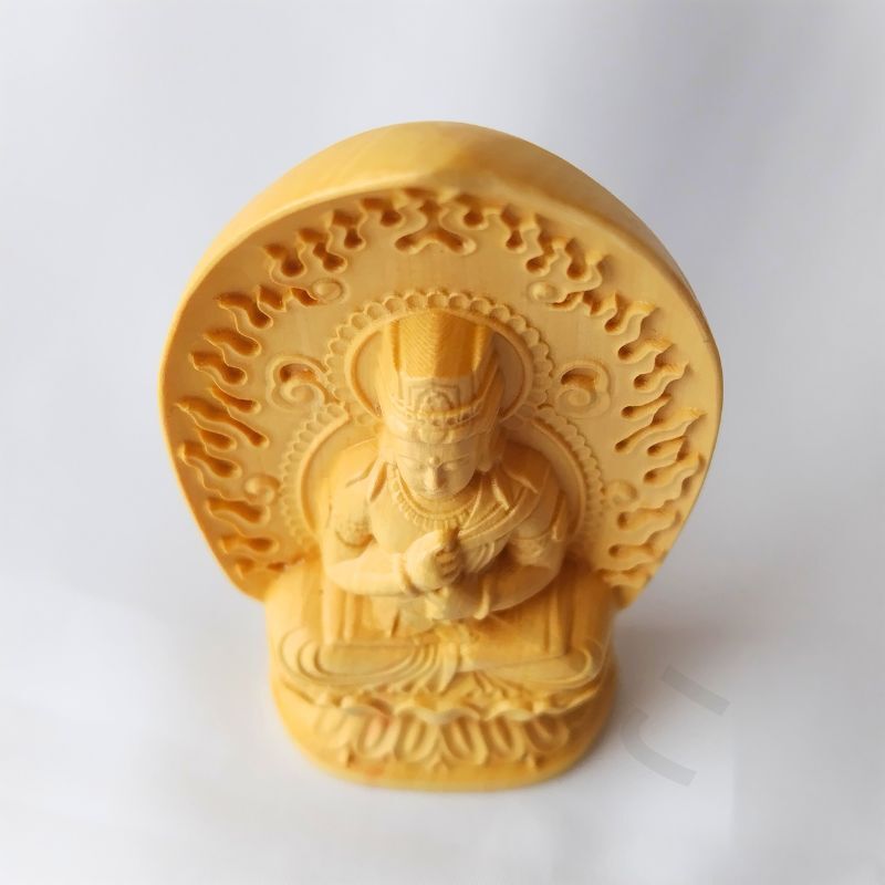 仏像 大日如来像 木彫り 彫刻 柘植 お守り袋 置物 真言宗 懐中 火炎光背 コンパクト 小さい 手の平 守本尊 未年 申年 曼荼羅 金剛界 仏教