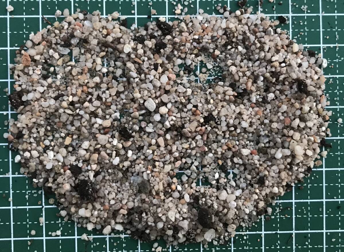 細かいミネラルを含んだ砂の中に肥料と思われる茶色い土の様な物が混ざっており水を入れると水面に浮き水は濁ります(写真1〜10参照)。