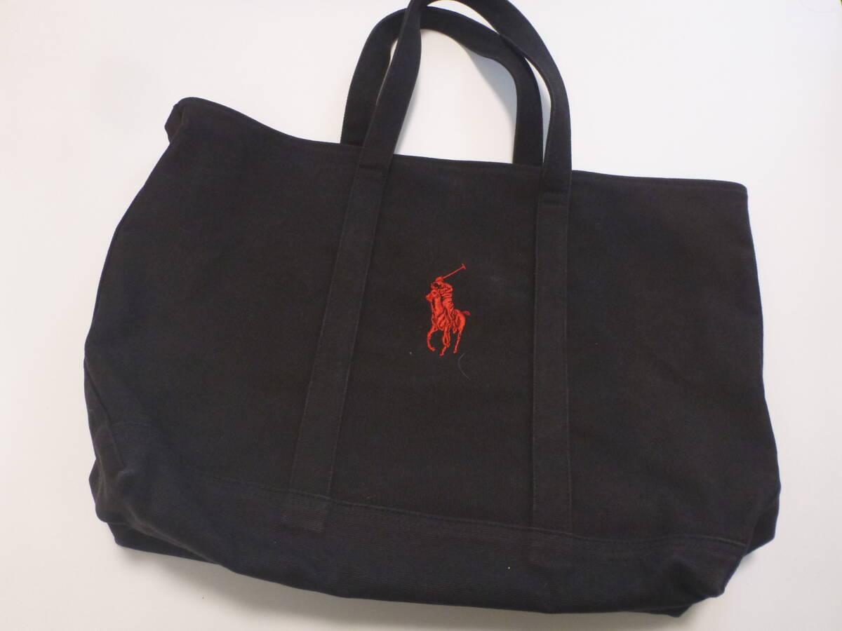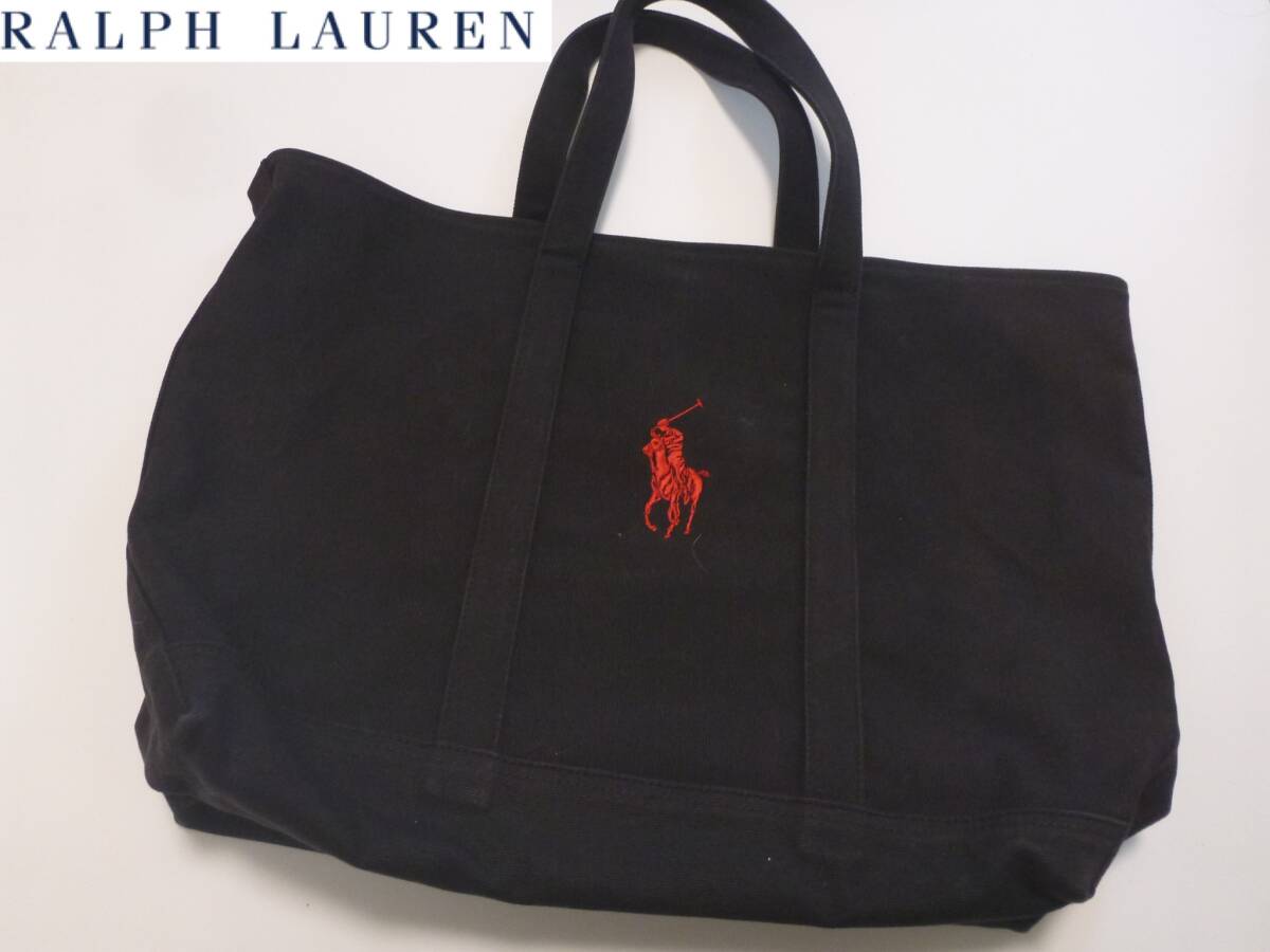 美品 ラルフローレン 黒ブラック×赤刺繍 ロゴ刺繍 トートバッグ