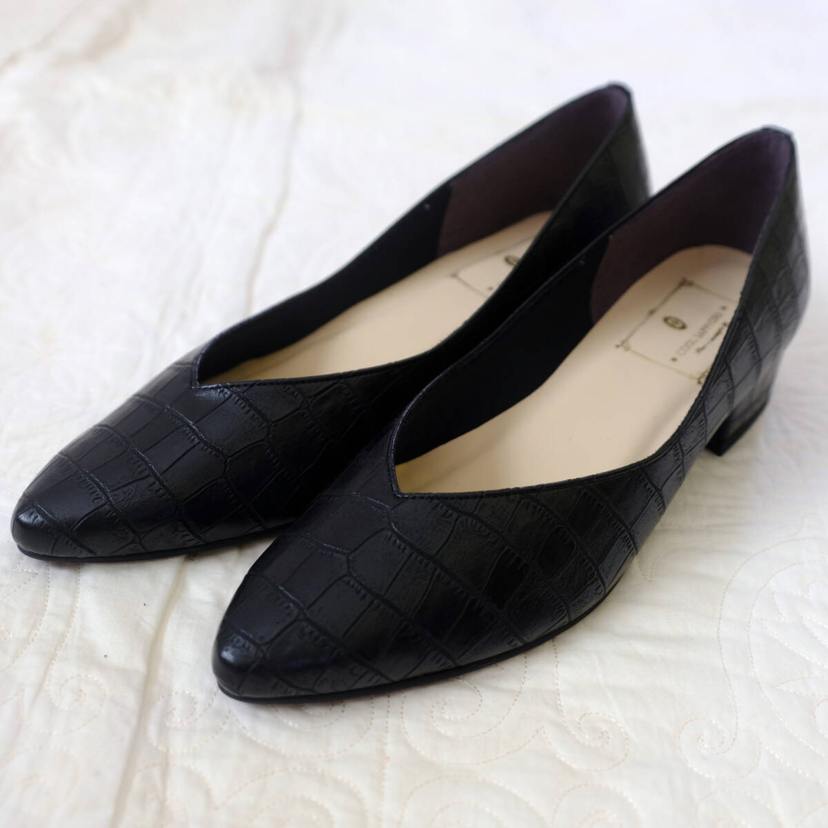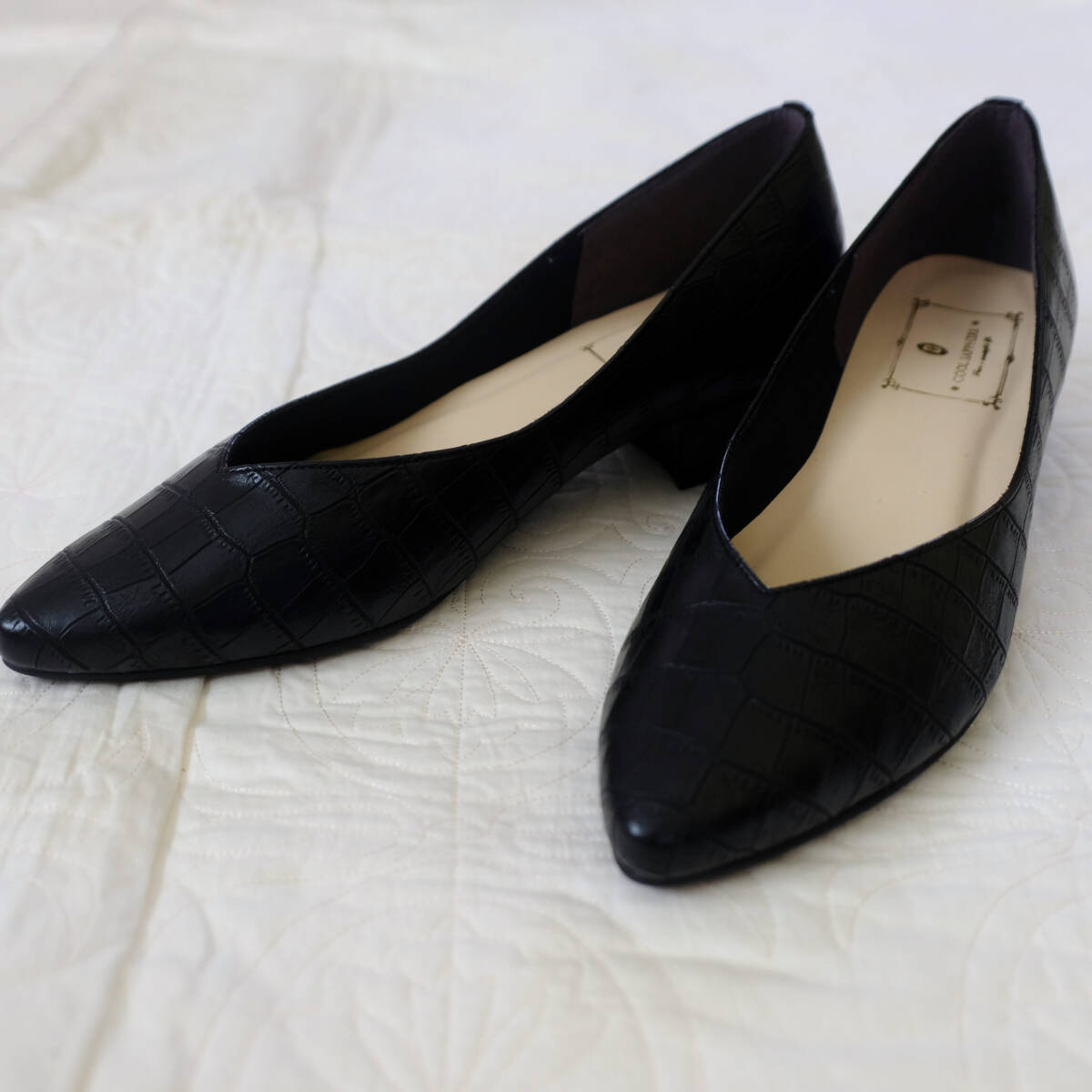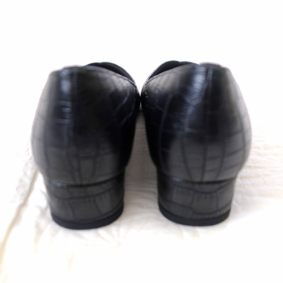履き心地に定評のあるシューズイン神戸のローヒールパンプです。 クッションが効いていて履き心地抜群です。 V字型にカッティングされているので足元がスッキリと見えます。 【サイズ】23cm ヒール3cm 【価格】7000円程だったと思います。 【色】黒色 難点は記載をしていますが、見落としがないとは言い切れません。 完璧を求める方、細かな事が気になられる方は店頭にてお買い求め下さい。 |