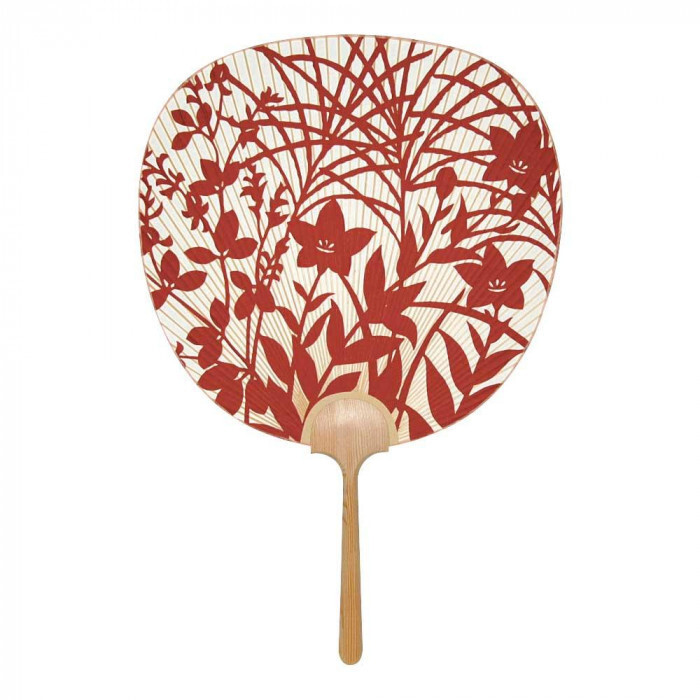 骨に紗を張り、両面に彫った和紙を貼って繊細な透かし柄を表現したうちわです。 |