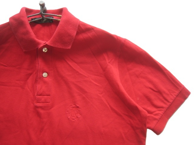 極上イタリア製!!ハンティングワールド HUNTING WORLD*ロゴ刺繍 半袖鹿の子ポロシャツ S 実寸M 赤 レッド