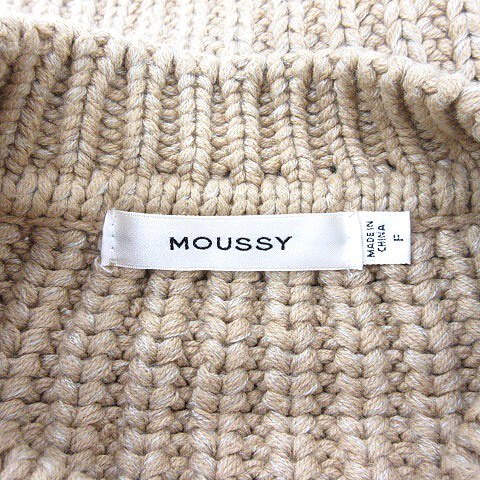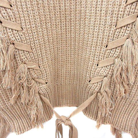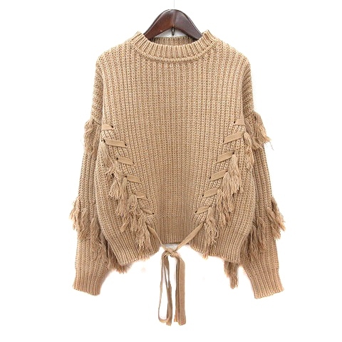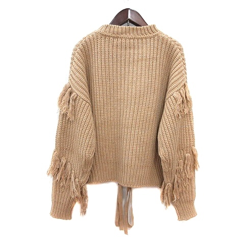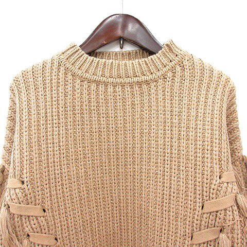マウジー MOUSSY ニット セーター ハイネック 長袖 フリンジ リボン F ベージュ /MN レディース
