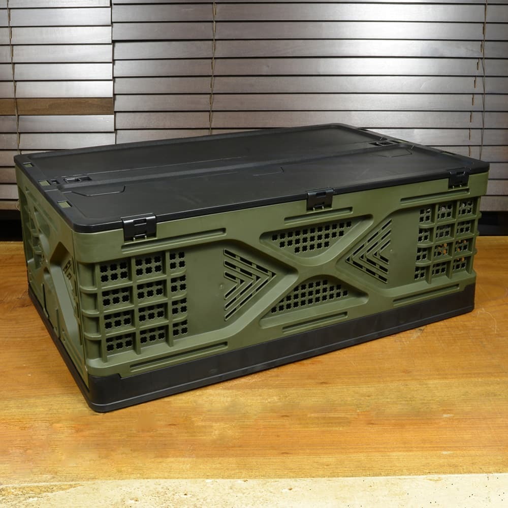| こちらは「コンテナボックス 折り畳み式 ロック付き蓋 プラスチックフレーム 容量50L [ アーミーグリーン ]」のご購入ページです。 収納ボックスの詳細