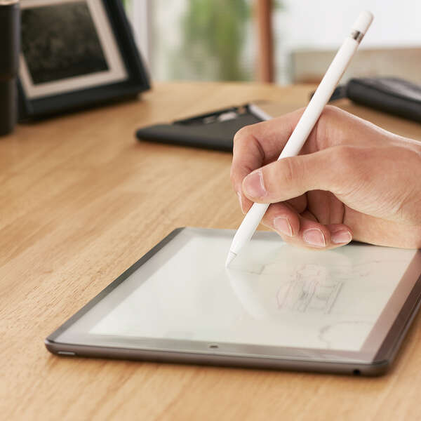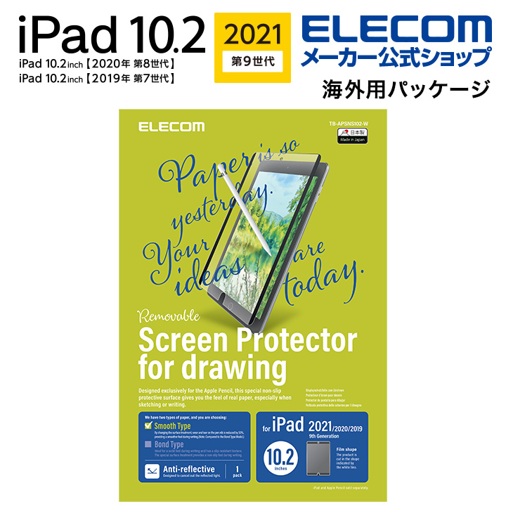 特殊表面形状デザインによりケント紙に鉛筆で描いたような描き心地を実現します。動画などを見る際には簡単に着脱でき、端末本来のクリアな画面を楽しめるiPad 10.2インチ 第9世代2021年モデル、 第8世代2020年モデル、第7世代2019年モデル用着脱式紙心地フィルムです。