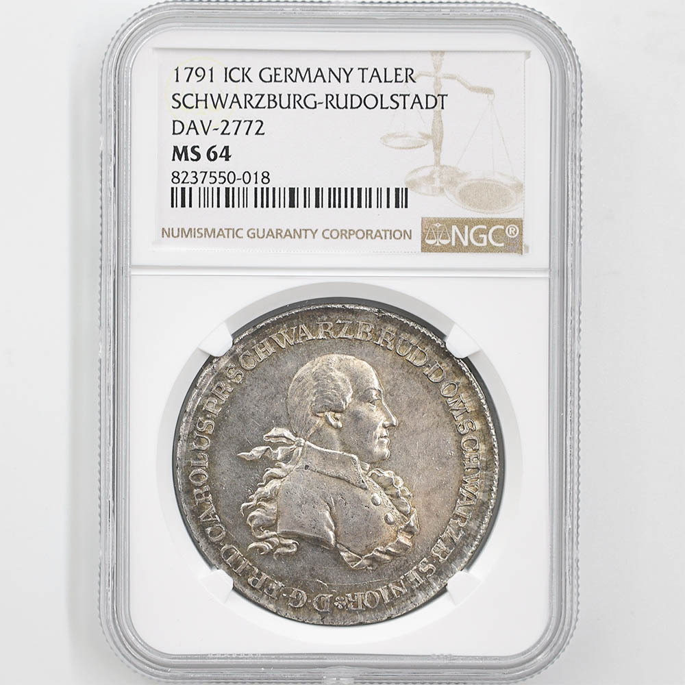 1791 ドイツ シュヴァルツブルク=ルードルシュタット フリードリヒ・カール 1ターラー 銀貨 NGC MS 64 最高鑑定 未使用~完全未使用