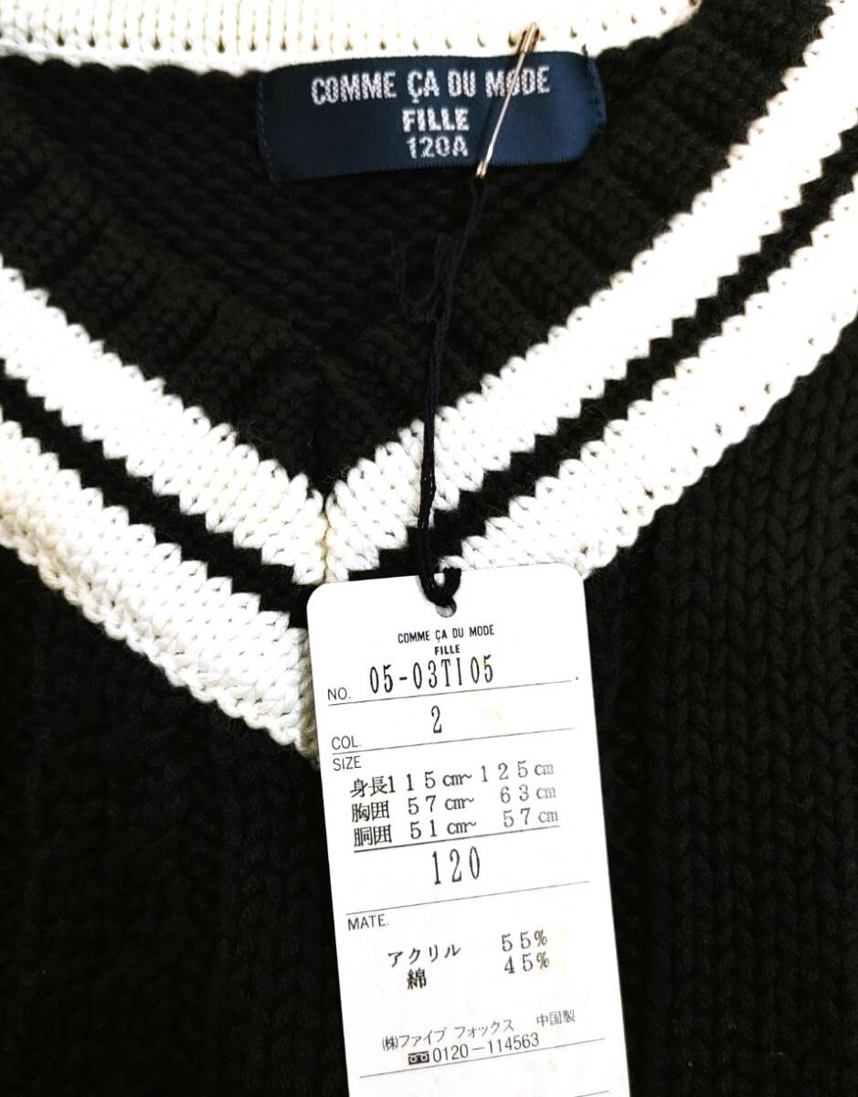未使用タグ付きコムサデモードCOMME CA DU MODEキッズニットベスト120Aブラック