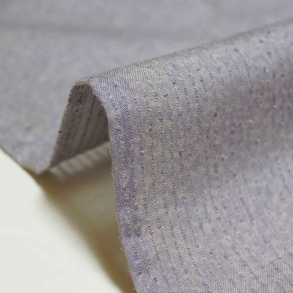 | 商品説明 | 経糸に真綿の織節のあるシックな藤色系の紗地に薄っすらと撒き糊模様が染められた夏の紗紬です。 |