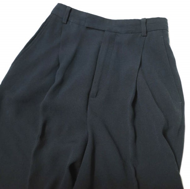 6 ROKU BEAUTY&YOUTH UNITED ARROWS ロク 日本製 GEORGETTE HIGH WAIST PANTS ジョーゼットハイウエストパンツ 8614-202-0157 32 ネイビー