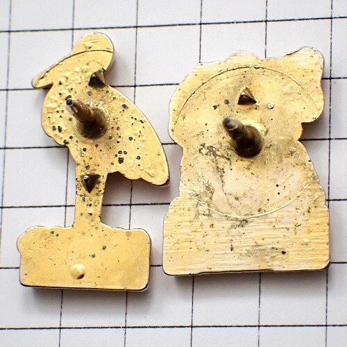 ピンズは、裏側に針が付いており、金属の留め金でとめるようになっています。 留め金が付属しています。新品の留め金も一緒に発送いたします。 | |