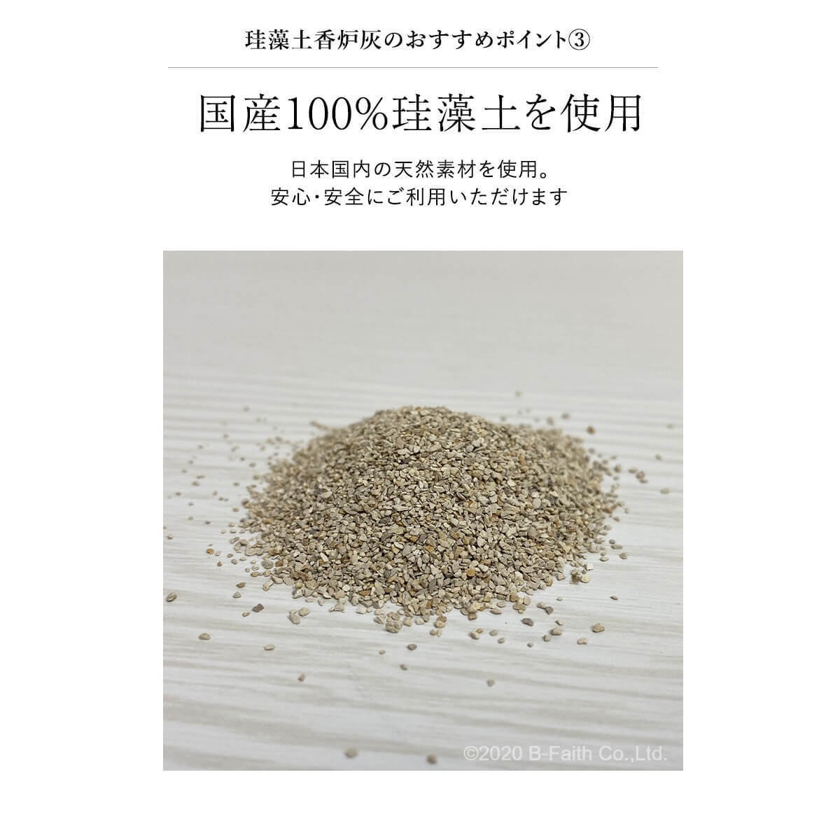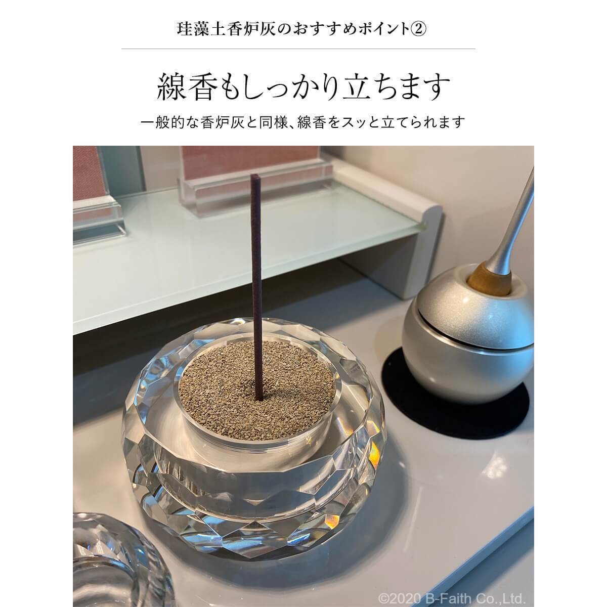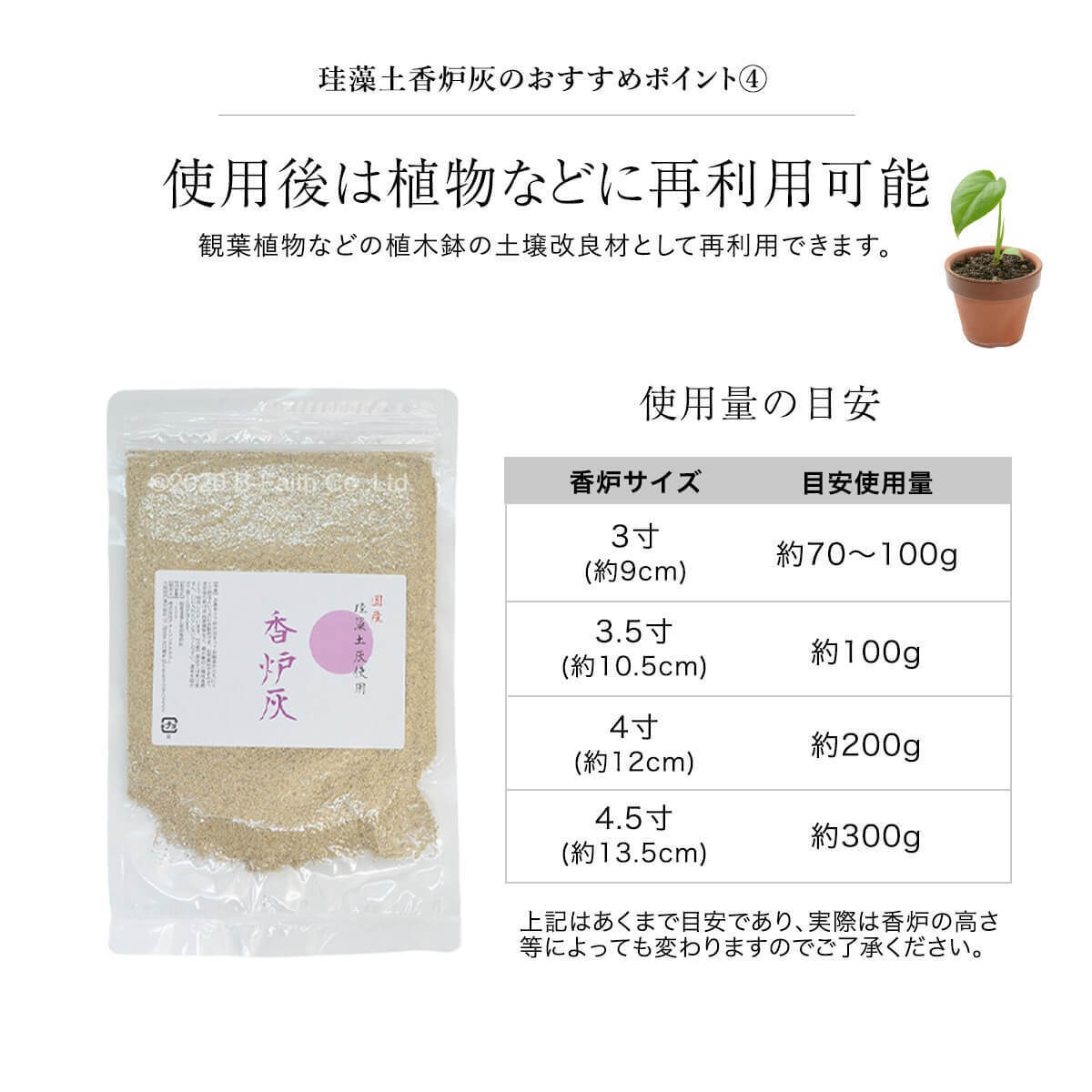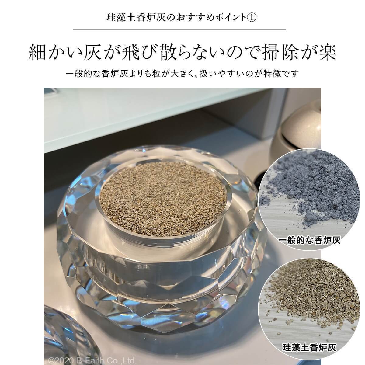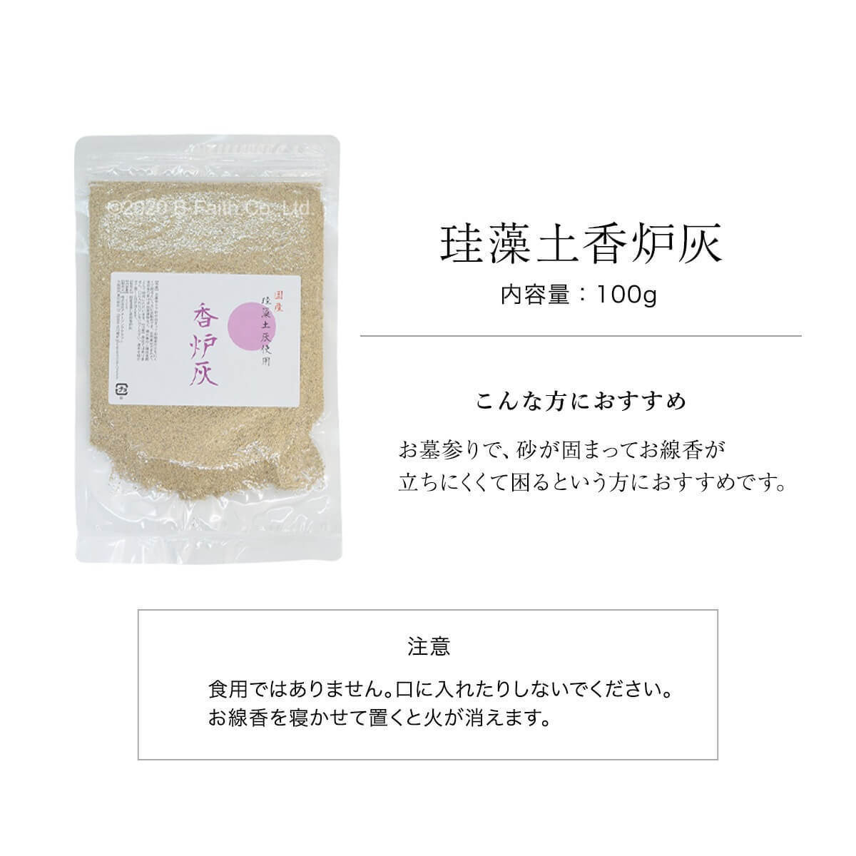 説明 | 灰が舞いにくく、散らからず清潔に使用することができる香炉灰です。 日本国内の珪藻土を使用した天然100%の素材なので、安心してご使用いただけます。 保存するのに便利なジップ付きのパッケージに入っているので、余った分もそのまま保存していただけます。 囲炉裏や火鉢でのご使用も可能です。 |