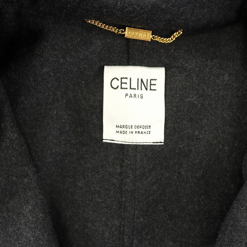 セリーヌ CELINE ヴィンテージ コート ロング スタンドカラー ウール サテン 総裏地 メタルパーツ 赤 レッド 灰 グレー 金 ゴールド