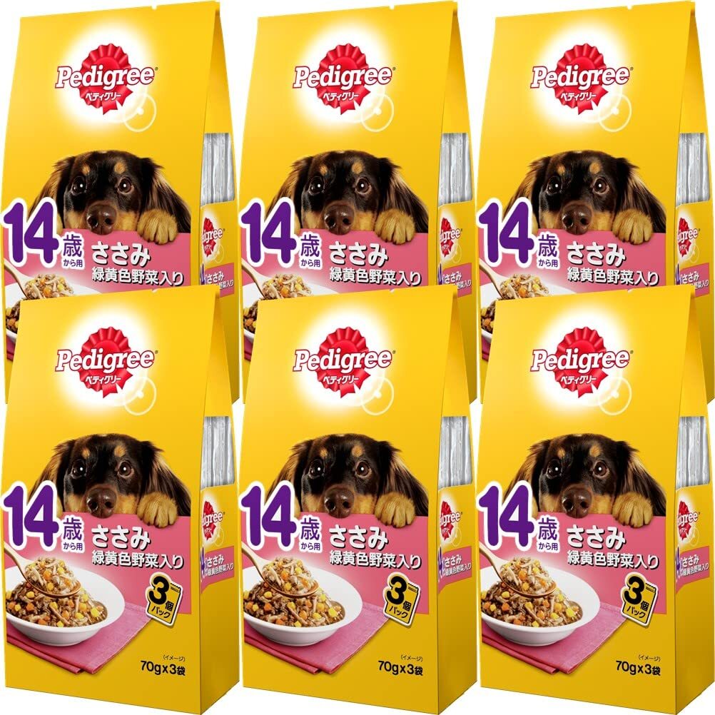 | 商品名 | ペディグリー シニア犬 14歳から用 ささみ&緑黄色野菜 210g(70g×3袋)×6個 [ドッグフード・パウチ] | ||