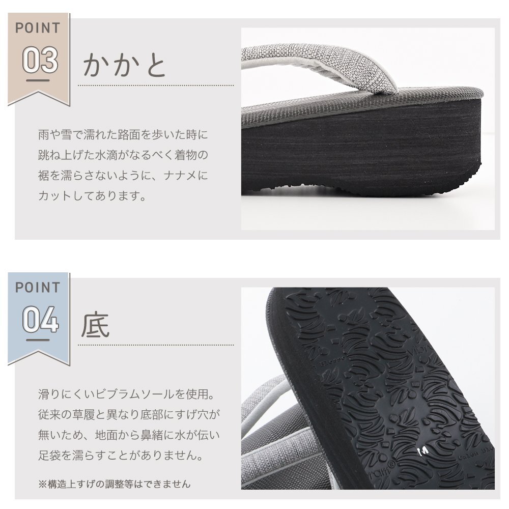 お洒落な見た目と履き心地のよさから、日常的にお着物を召される方はもちろん、お着物・お草履初心者さんにもおすすめの逸品です