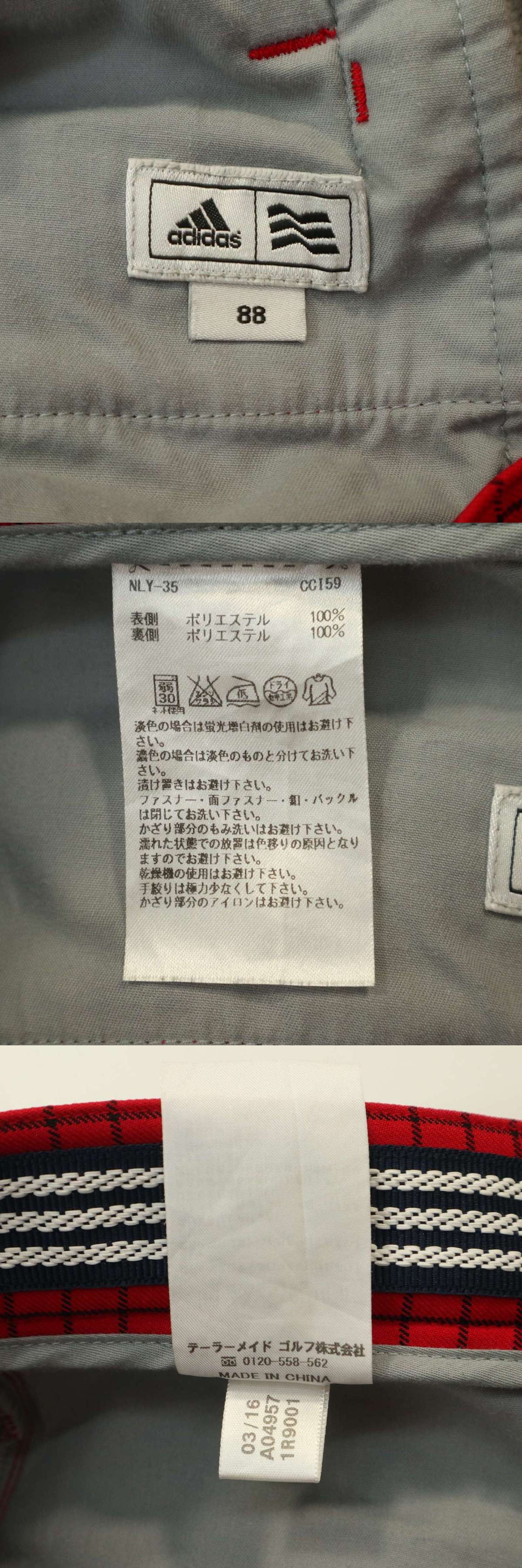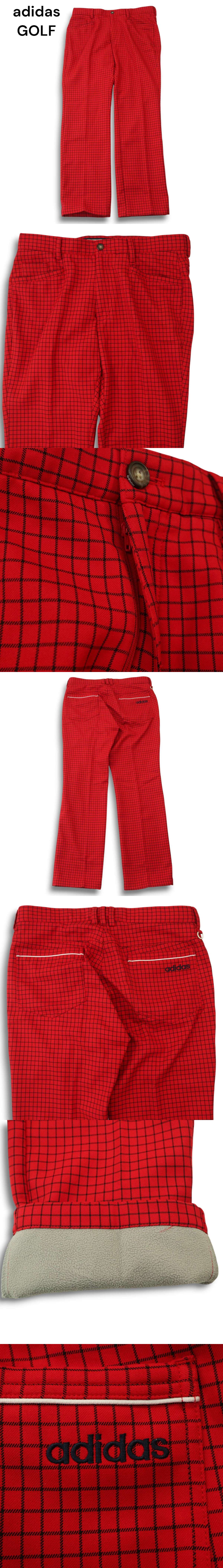 adidas GOLF アディダス ゴルフ 秋冬 裏起毛★ チェック柄 スラックス パンツ Sz.88 メンズ 赤