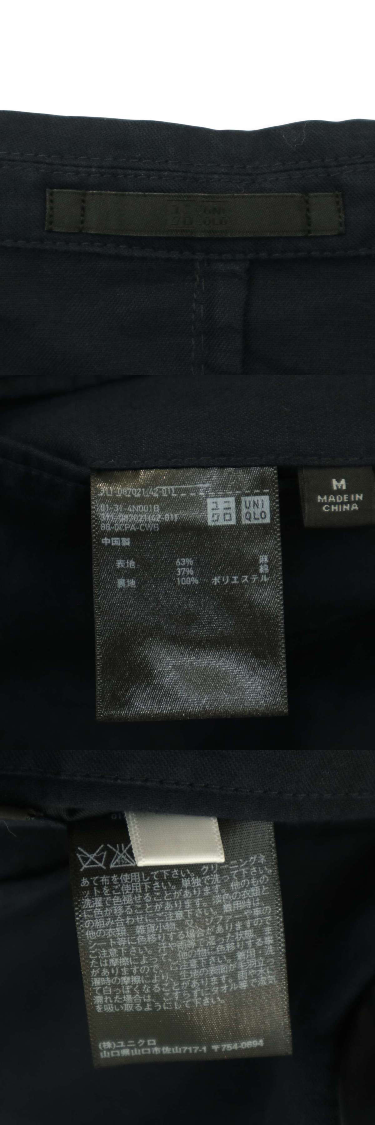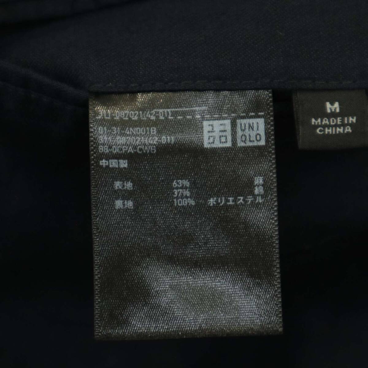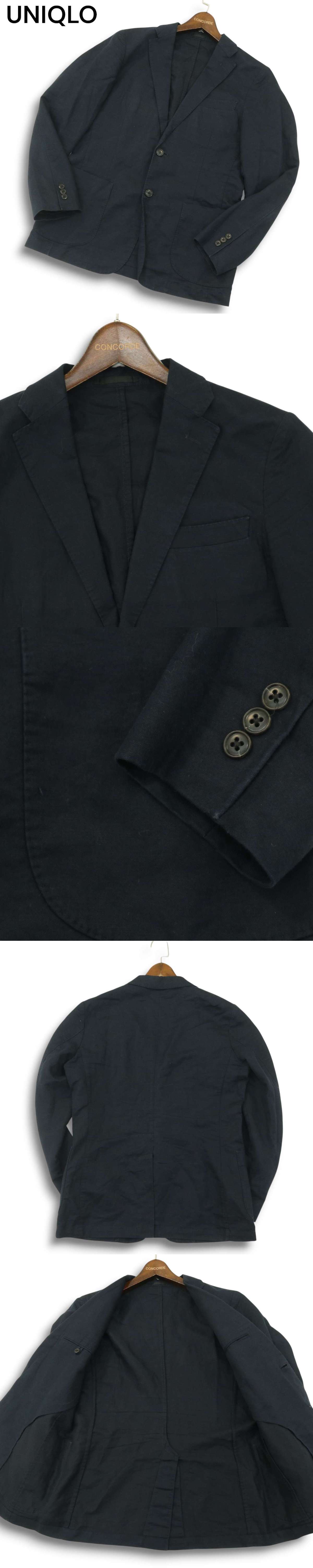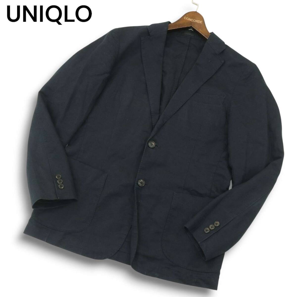 UNIQLO ユニクロ 春夏 麻 コットン リネン★ 2B アンコン テーラード ジャケット Sz.M メンズ ネイビー