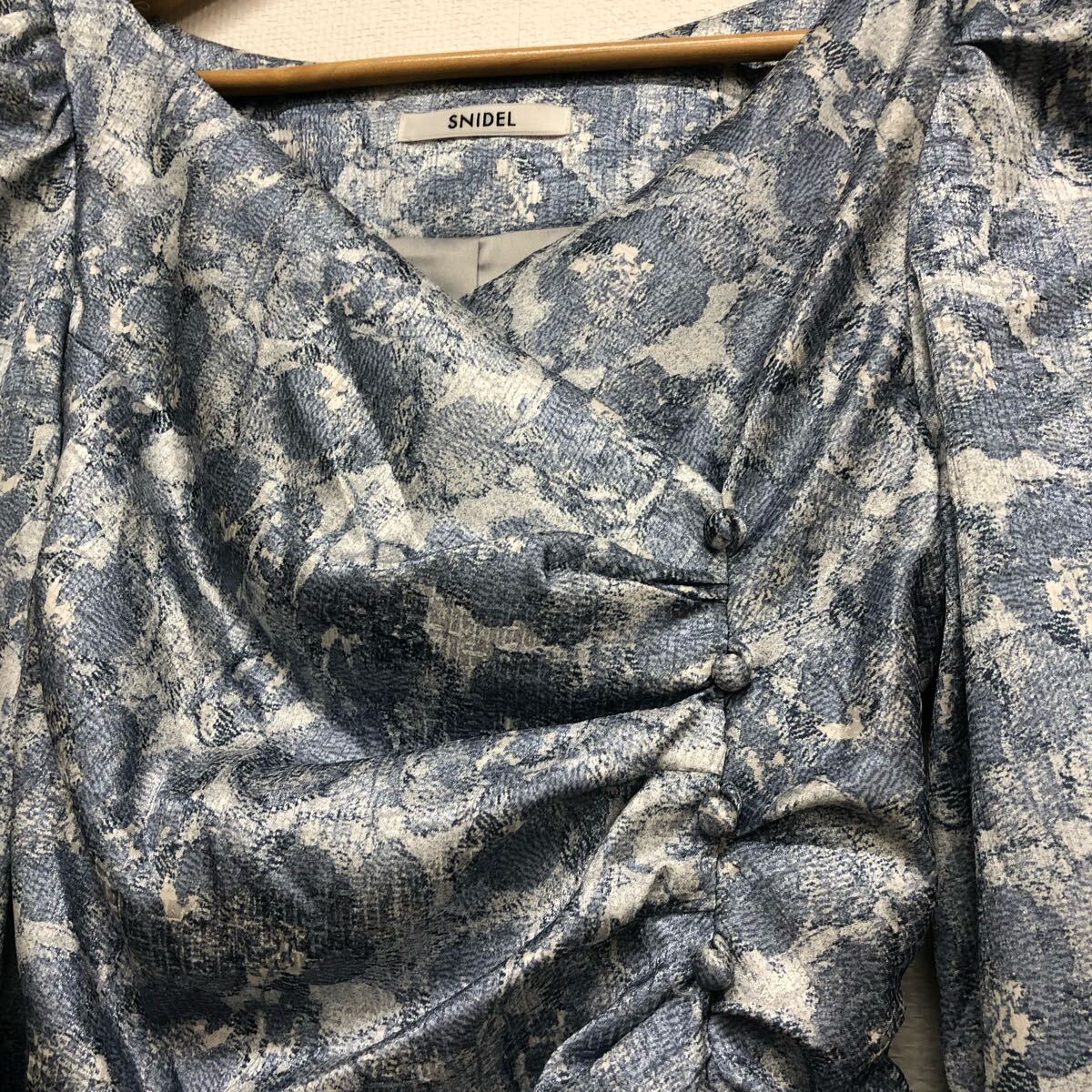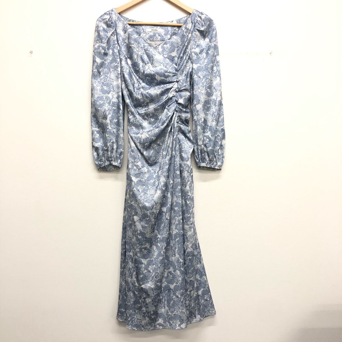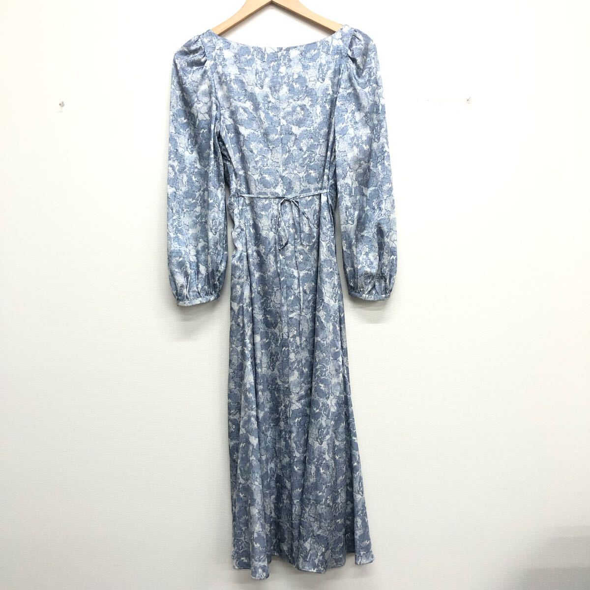 【SNIDEL】スナイデル★長袖ワンピース サイズ0 ポリエステル ブルー 総柄 SWFO251031 ジャガードプリントワンピース