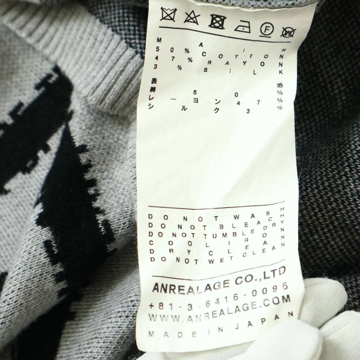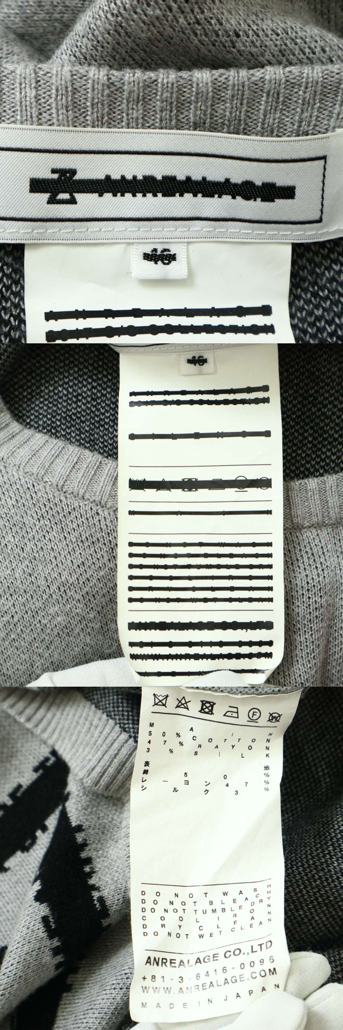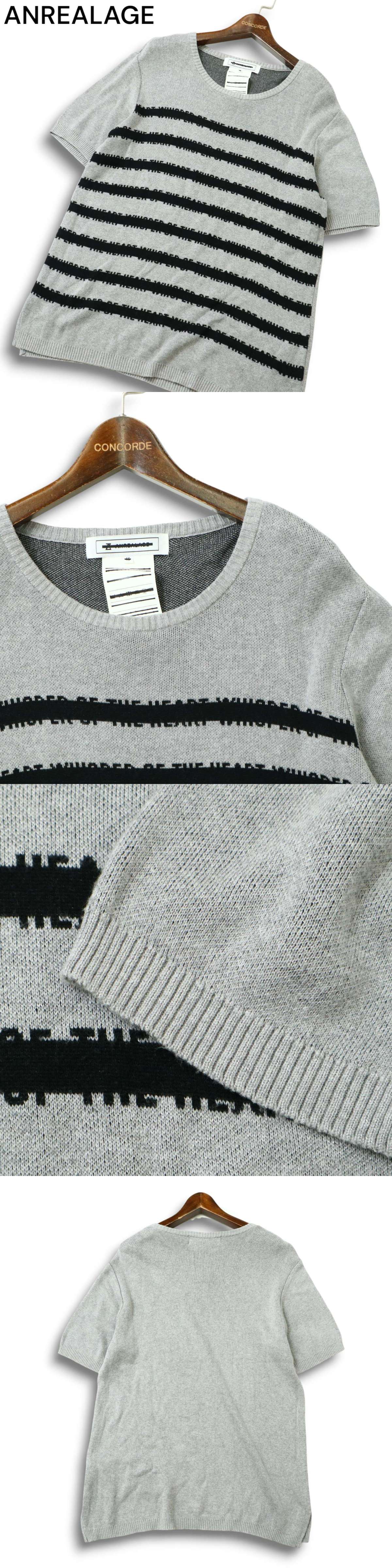ANREALAGE アンリアレイジ 春夏 シルク混★ ボーダー 半袖 クルーネック ニット Tシャツ Sz.46 メンズ 灰 日本製