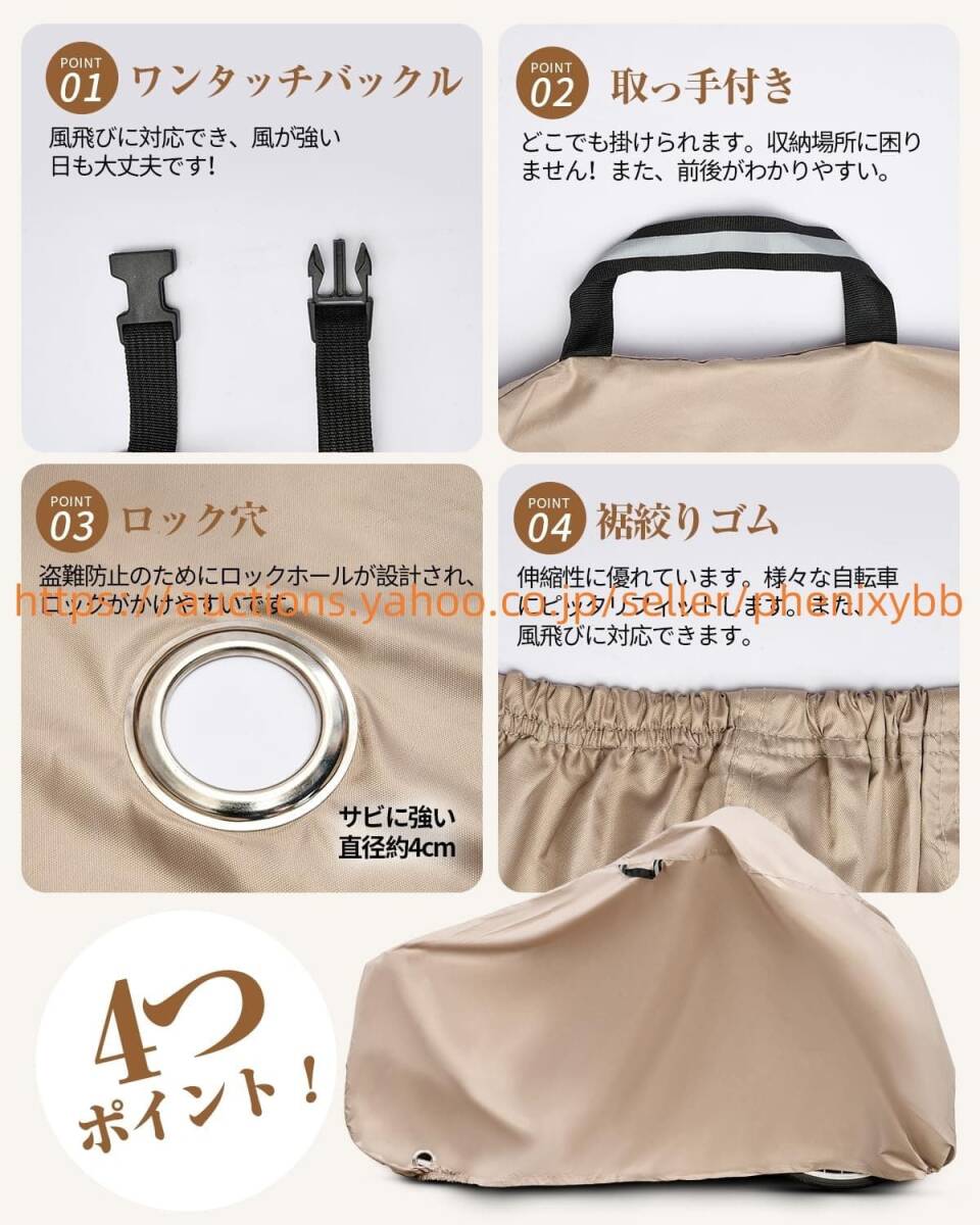 また、劣化しにくい素材なので、長い期間屋外で使え、長い期間自転車を風雨から守ることができます。