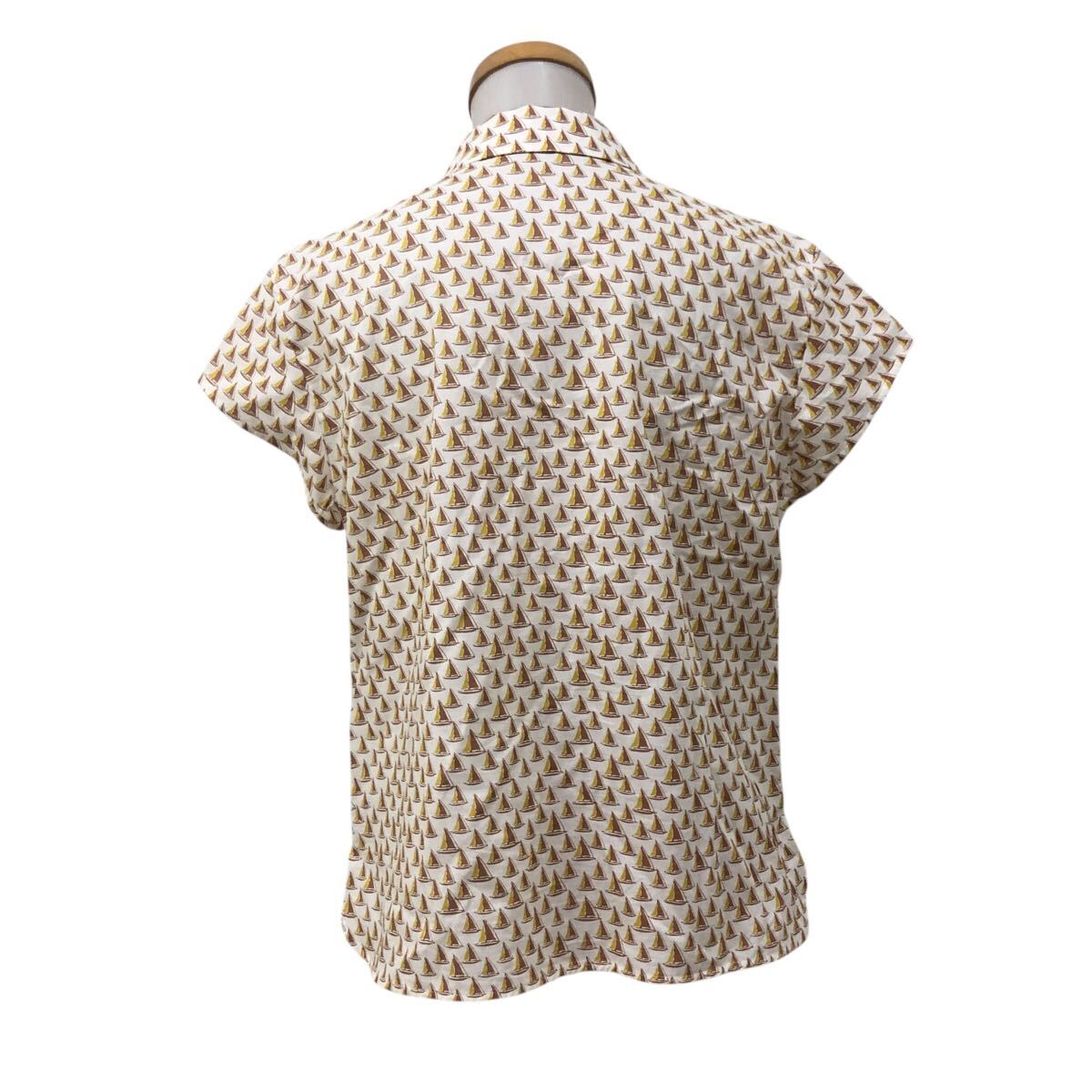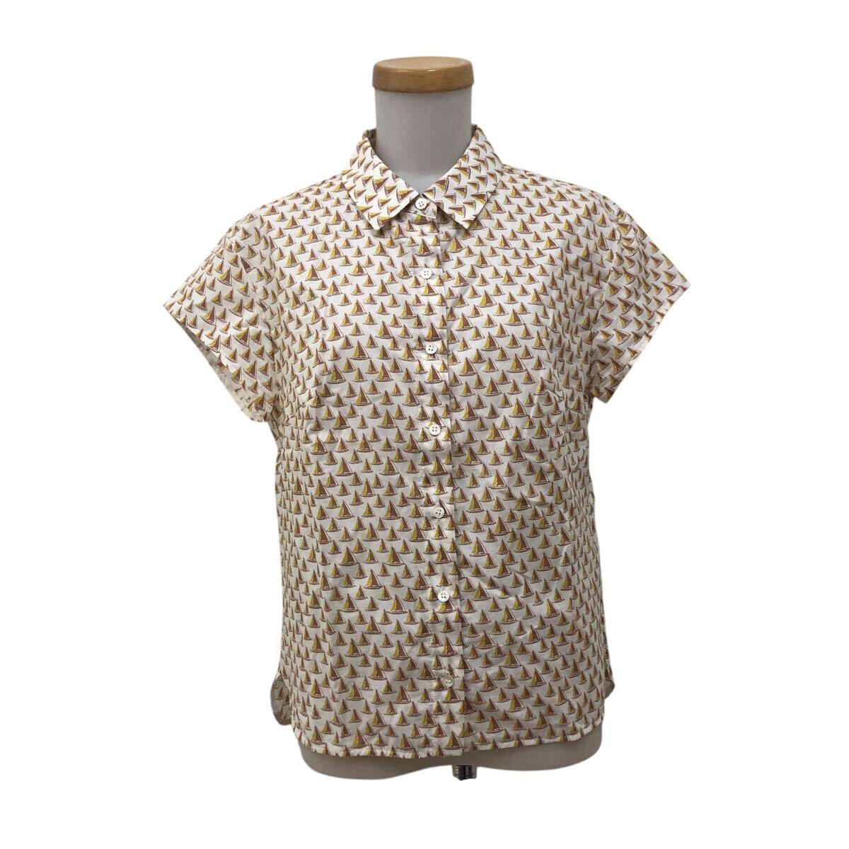 NC310-32 AMACA アマカ ヨット 柄 薄手 半袖 シャツ ブラウス トップス レディース 40 アイボリー系 コットン