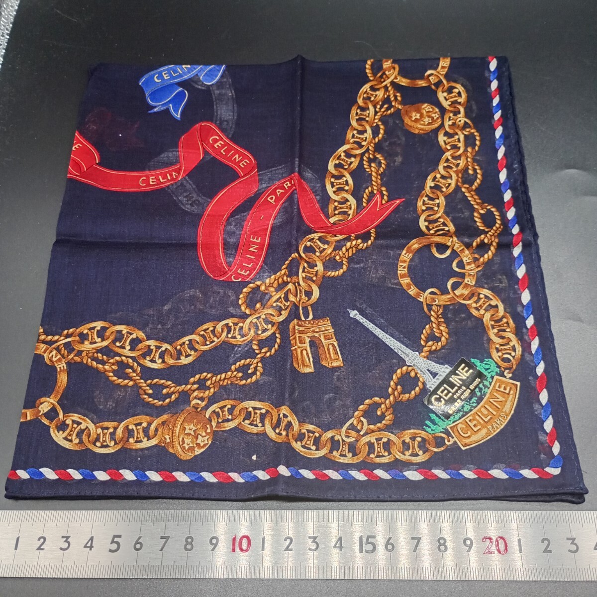 CELINE セリーヌ ハンカチ ネイビー フランス エッフェル塔 トリコロール no.3022