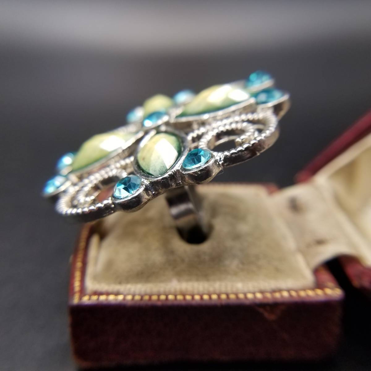 クラシック フラワー 大ぶり ライトグリーン ブルー ストーン マーキス ビンテージ リング 指輪 昭和レトロ ジュエリー 輸入 8Y-M