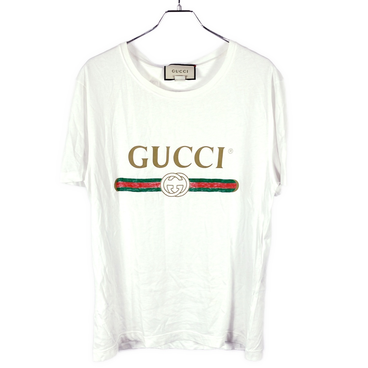 GUCCI グッチ ロゴ ウォッシュドオーバーサイズ Tシャツ 440103 X3F05 ホワイト XS ITCASU4BXE2A