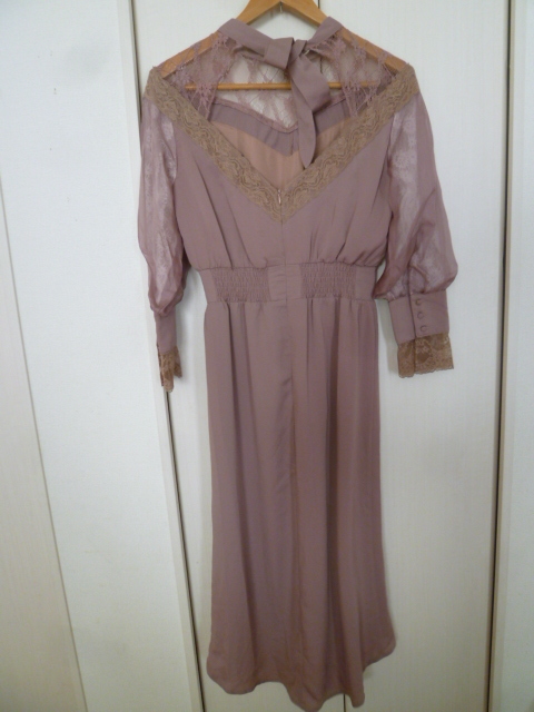 【未使用】beunco Rils◇くすみピンク系ホルターネック胸レースデザインフォーマルワンピースF/ロングマキシ丈結婚式パーティー◇OP81
