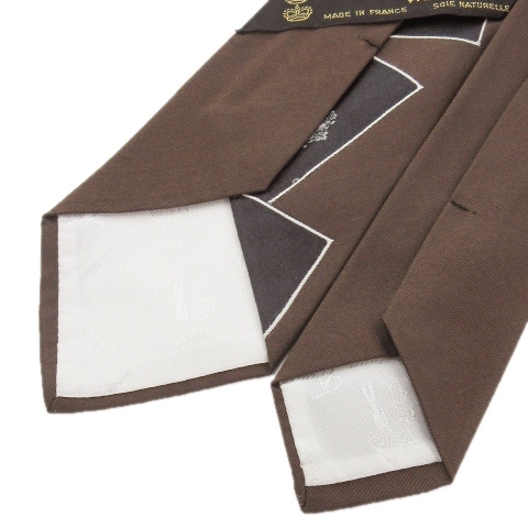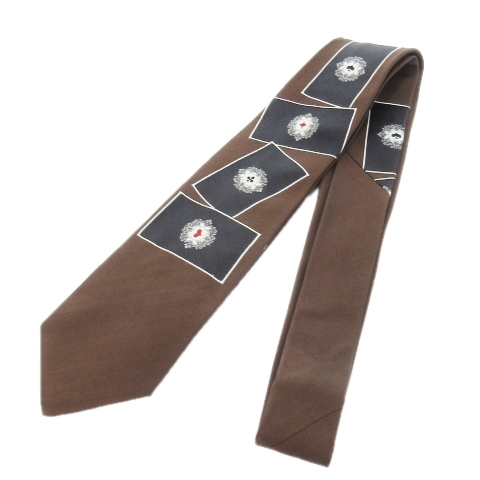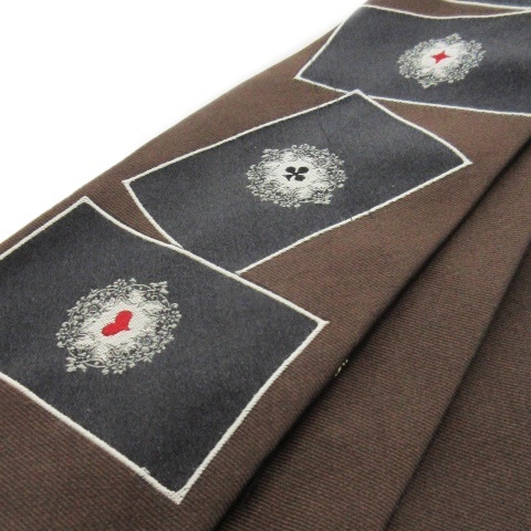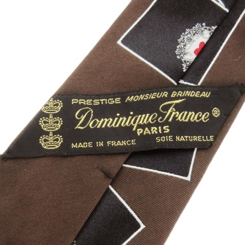 未使用品 ドミニクフランス Dominique France 王冠 スリークラウン ネクタイ レギュラー シルク 絹 トランプ柄 刺繍 茶